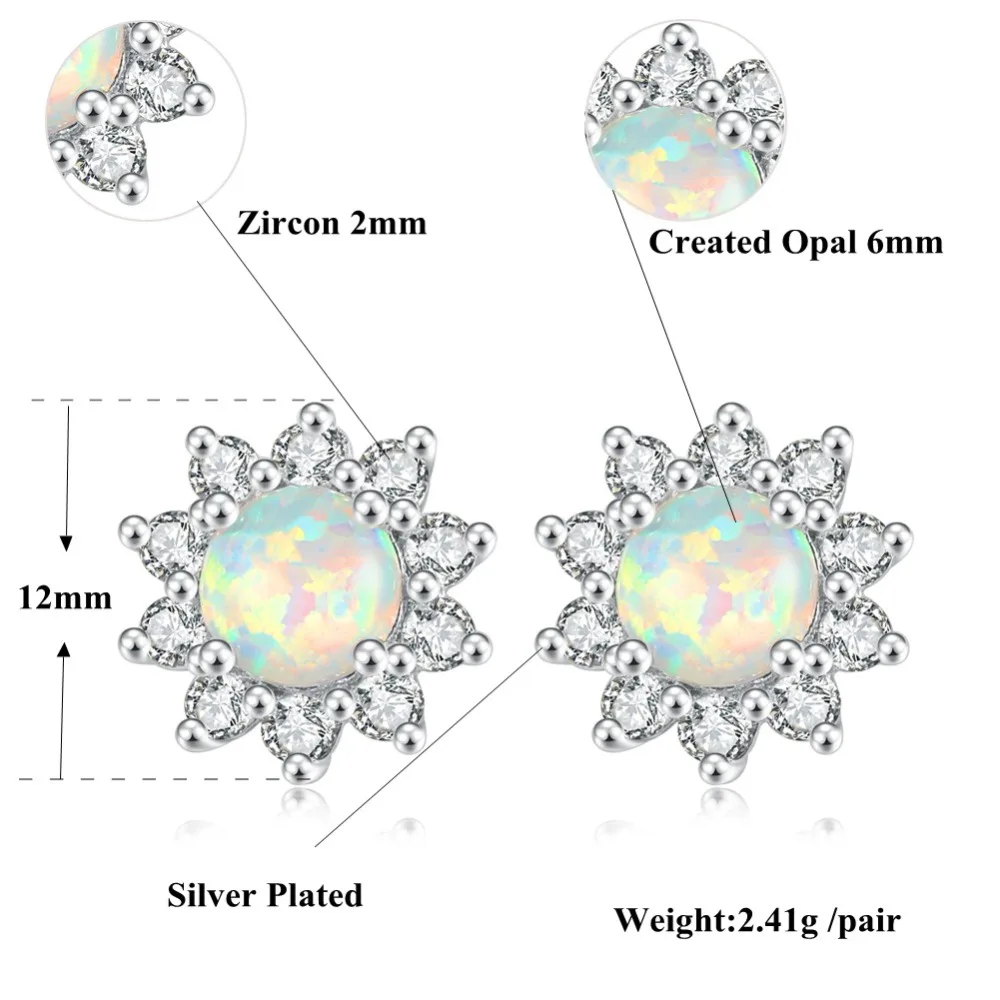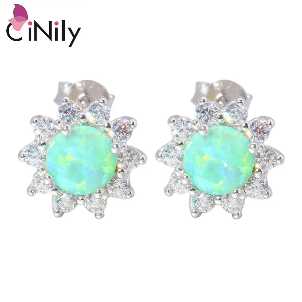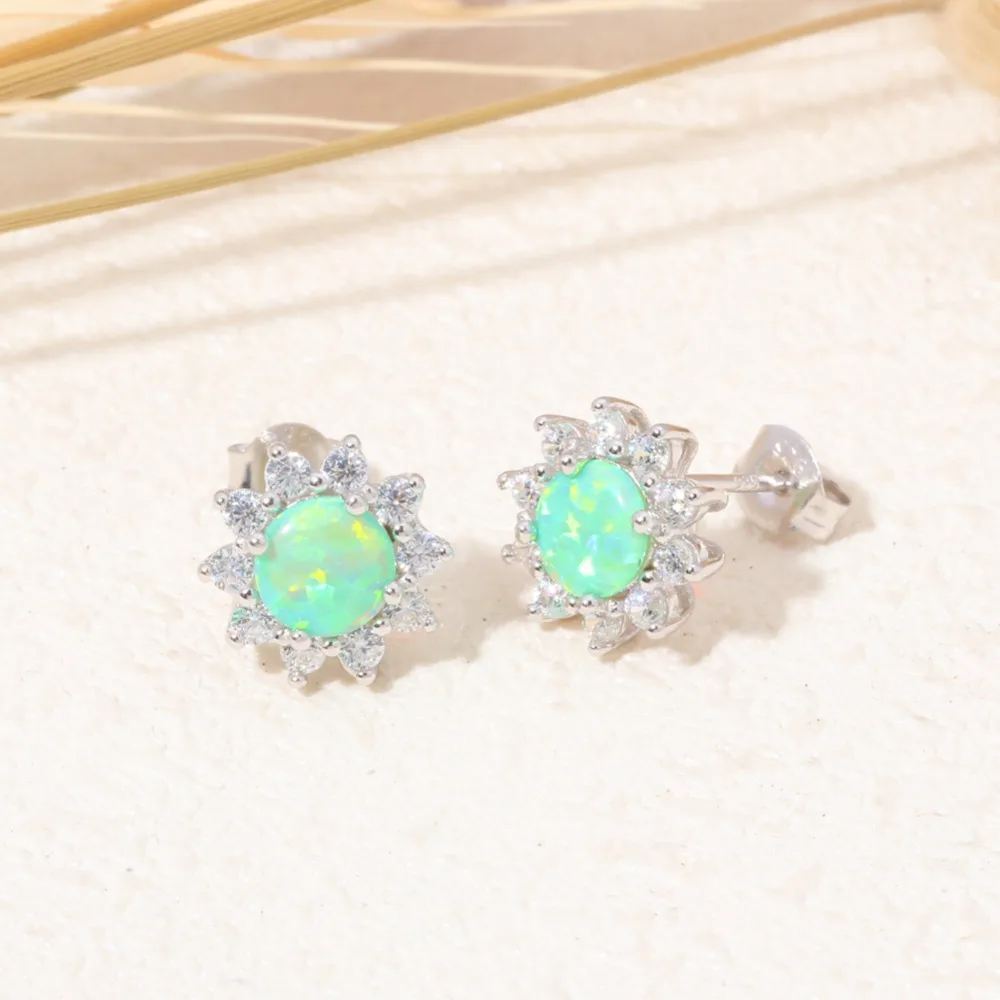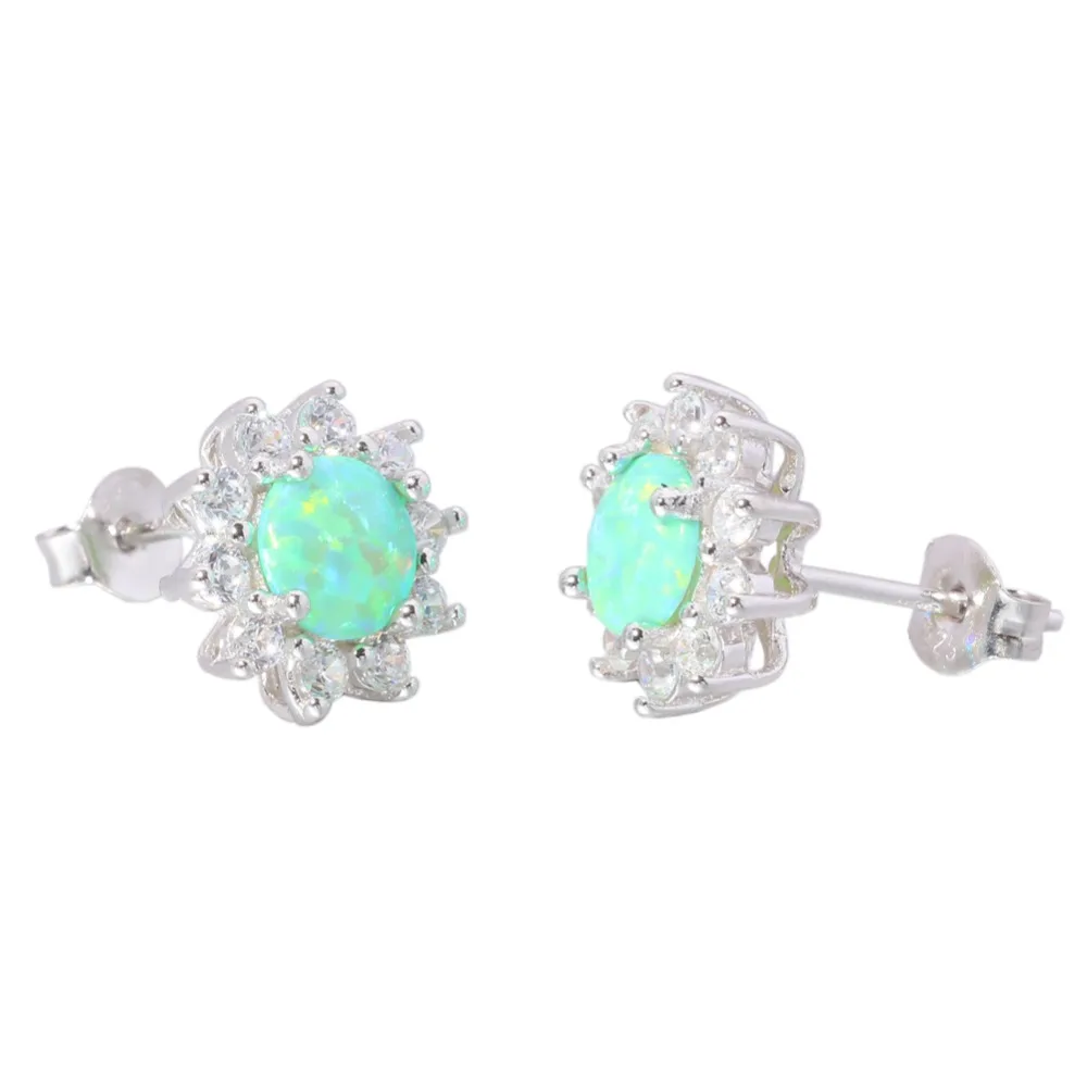 Soild 925 Sterling Silver Created Green White Fire Opal Cubic Zirconia Wholesale for Women Jewelry Stud Earrings SE020-21