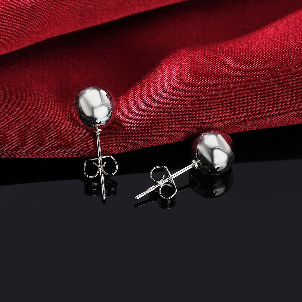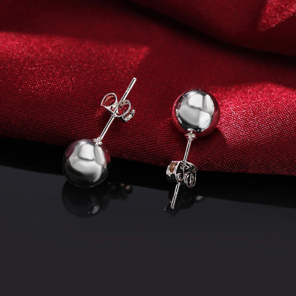 Classic 925 Sterling Silver 8mm 10MM beads studs Earrings for Women elegant Christmas gifts wedding party Jewelry