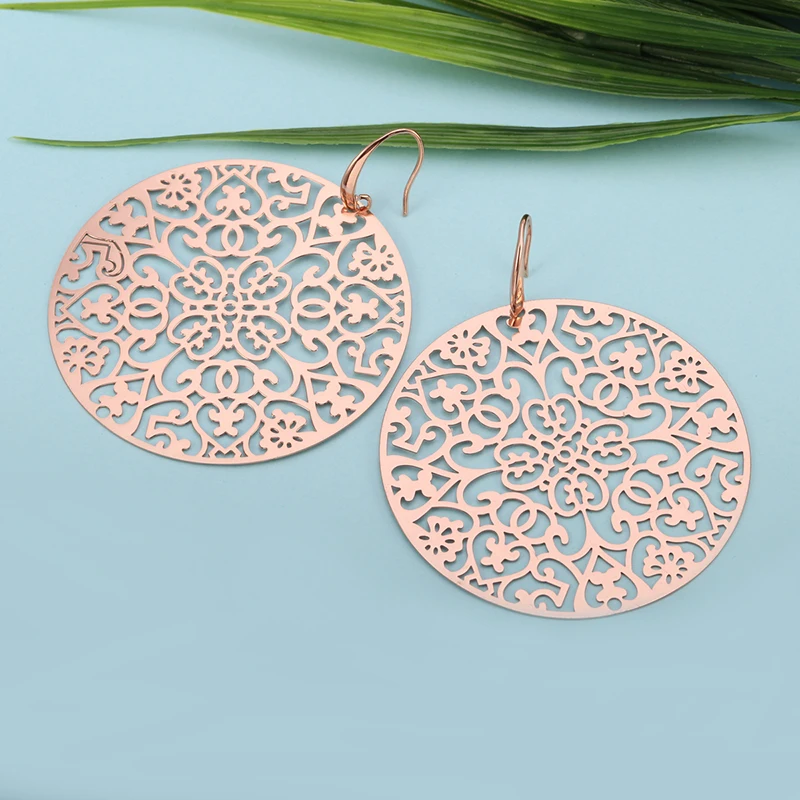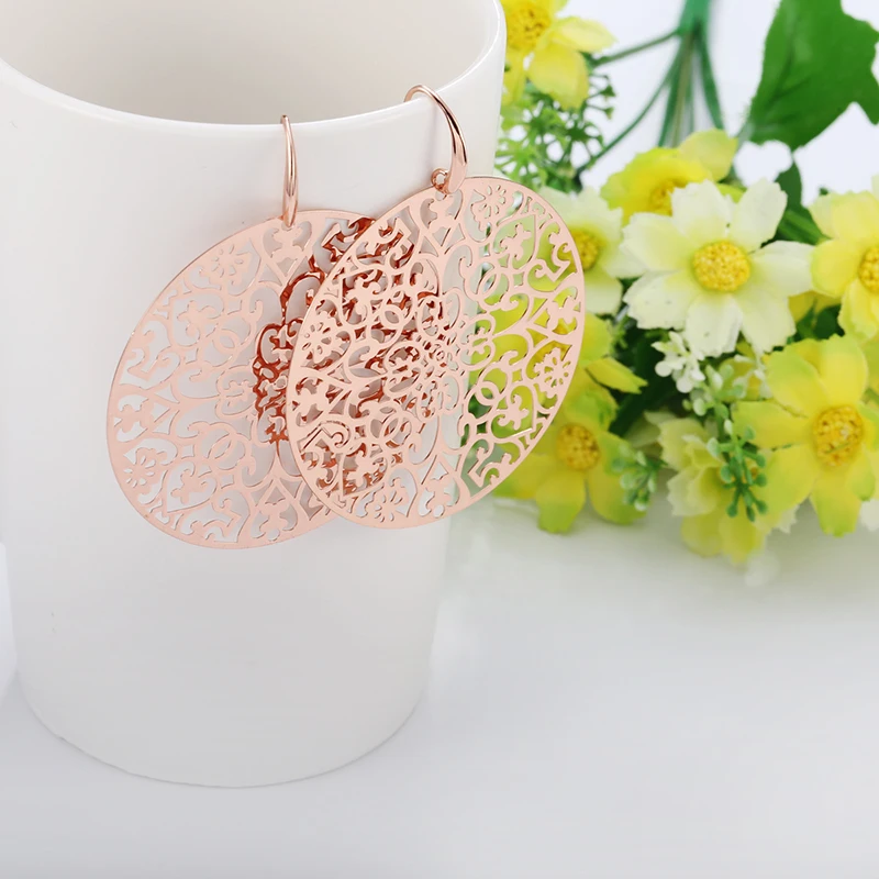 Classic s Big Hollow Flower Drop Earrings For Woman Gold Silver Color Bohemian Jewelry Statement Party Gift