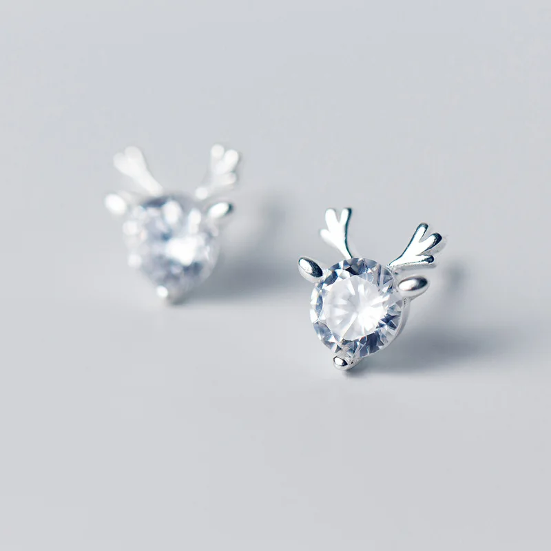 Creative Fashion Jewelry for Girls 925 Silver Crystal Earrings Elk Shape Design Birthd Prom Party Gifts Accessory