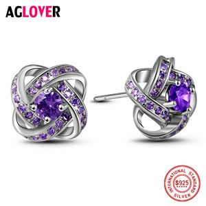 Crystal Earrings 925 Silver Charm Women 12mm Earrings 100% Sterling Silver AAA Zircon Fashion Jewelry