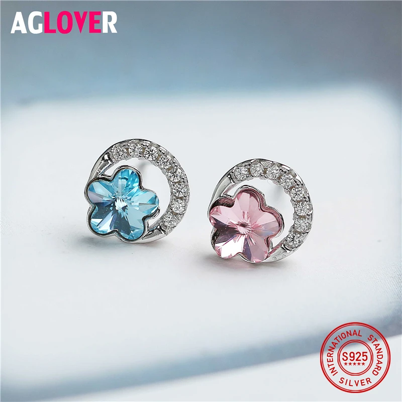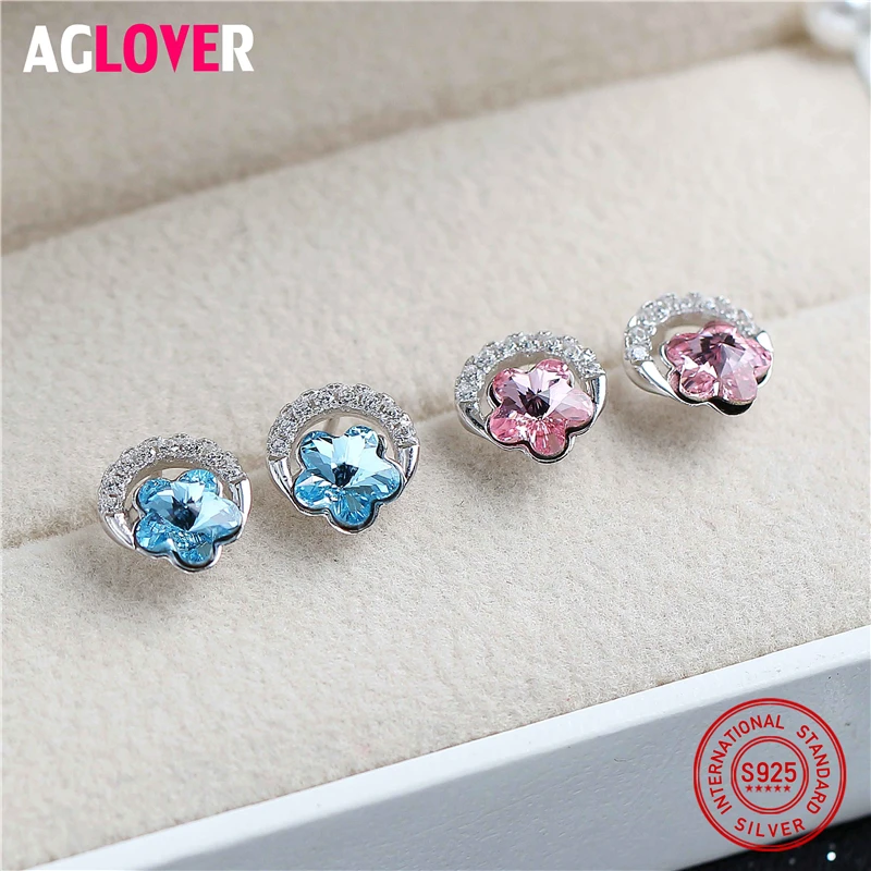 Cute Crystal Flower 925 Silver Stud Earring for Women Sterling Silver Charm CZ Snow Earrings 2020 New Style