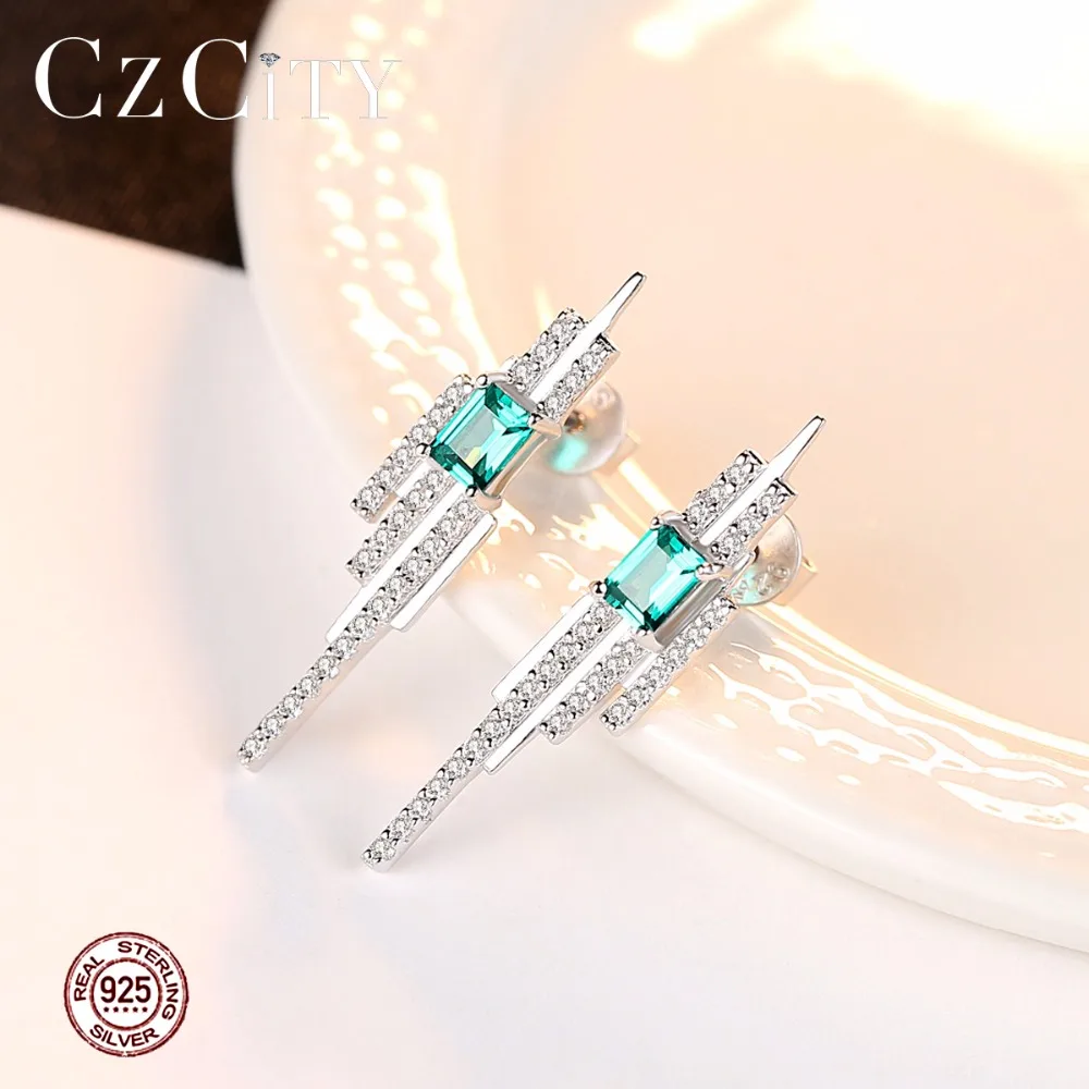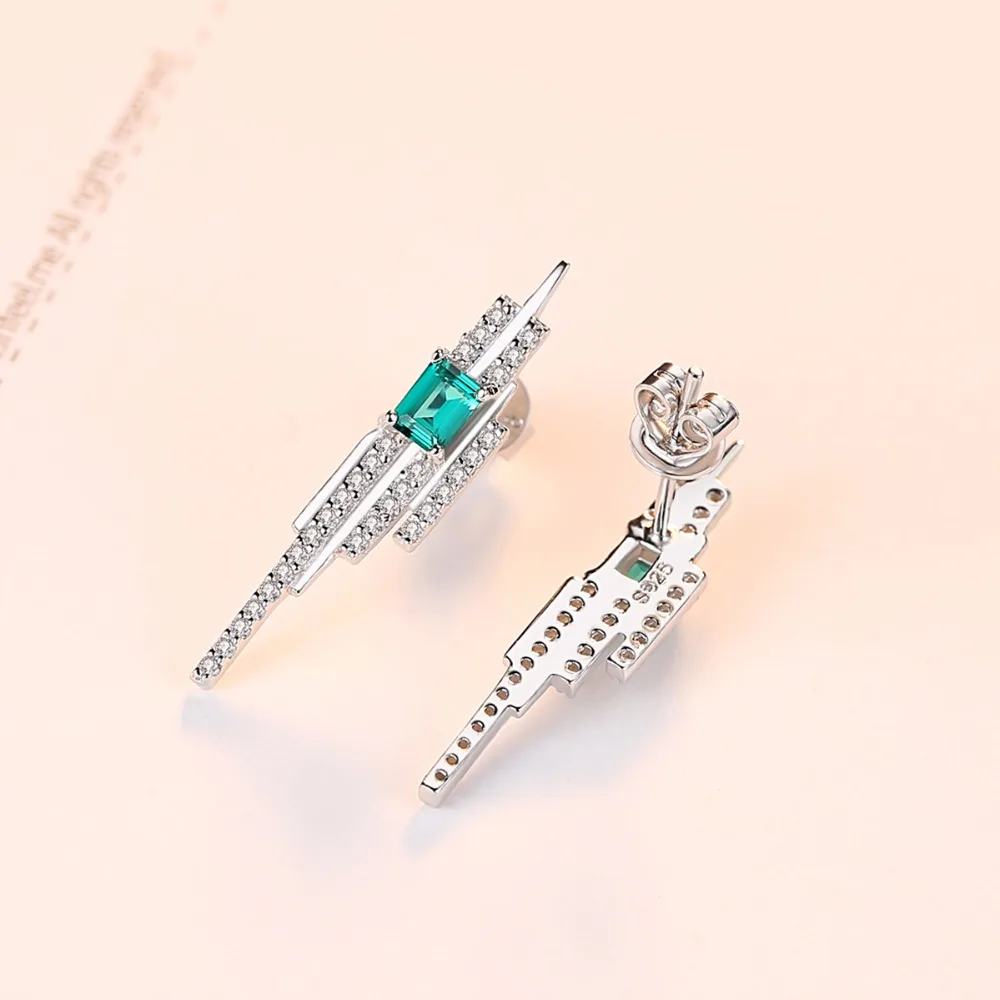 925 Charms Sterling Silver Square Emerald Blue-Green Gemstone with Tiny CZ Stud Earrings for Women Fine Jewelry