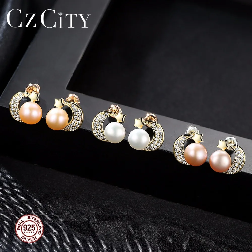 Brand Classic Jewelry 925 Sterling Silver Real 7-7.5mm Pearl Stud Earrings for Women Party Wedding Accessories