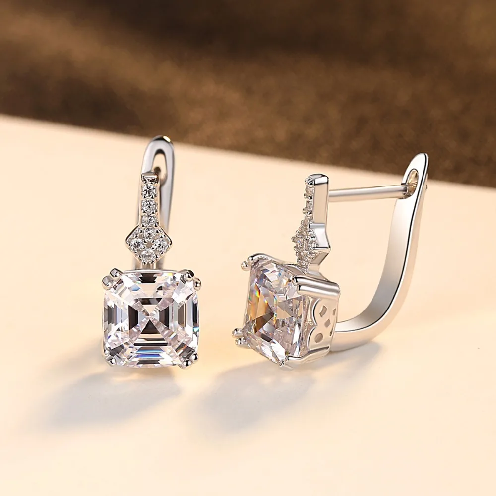 New Brand Created Nano Smoke /White Morgan Stone Diamond Clip On Earrings For Women Luxury 925 Silver Cuff Earring Gifts
