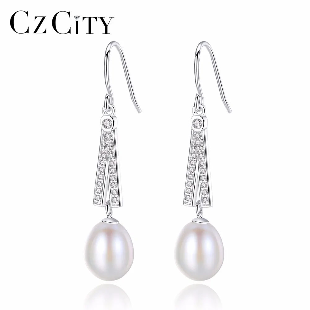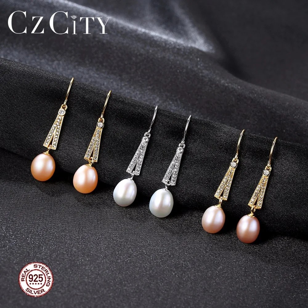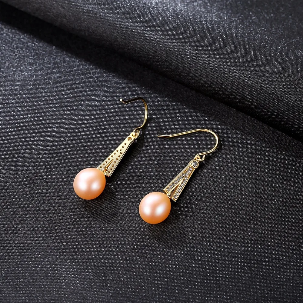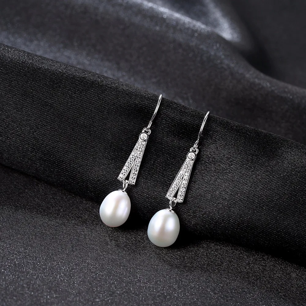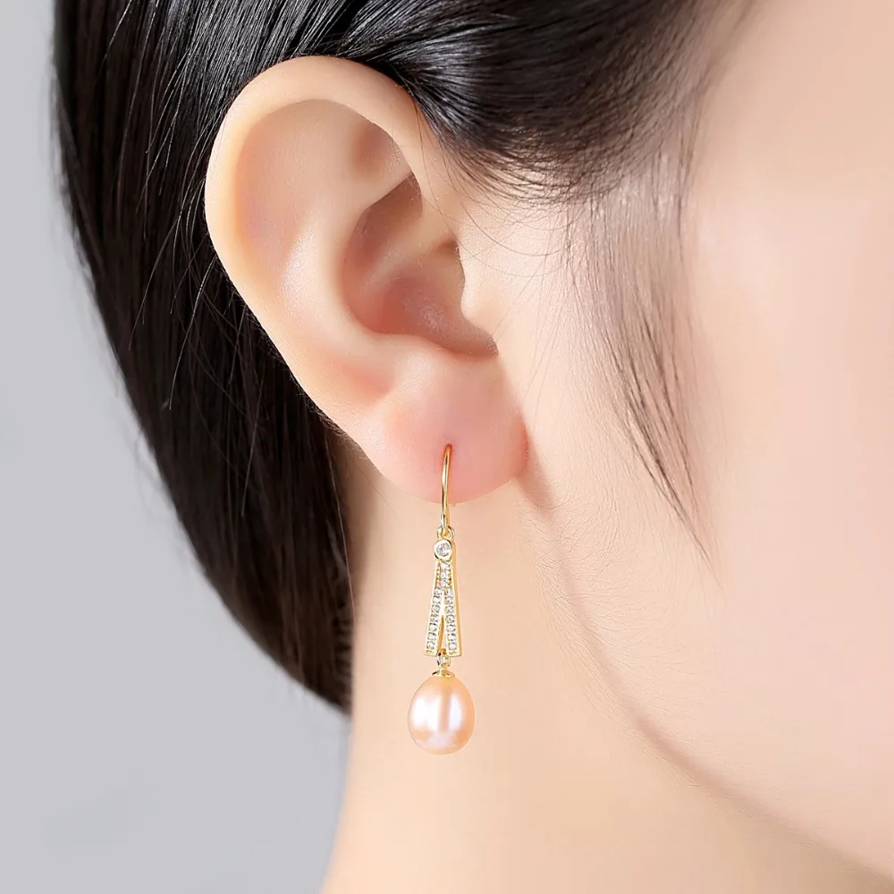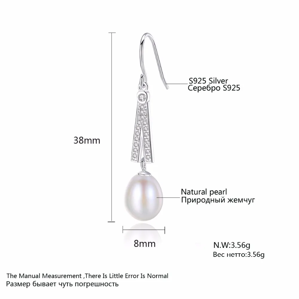 Pure Natural Pearl Earrings 9-10mm Drop Pearls 925 Sterling Silver Dangle Earrings Fine Jewelry Gift for Women