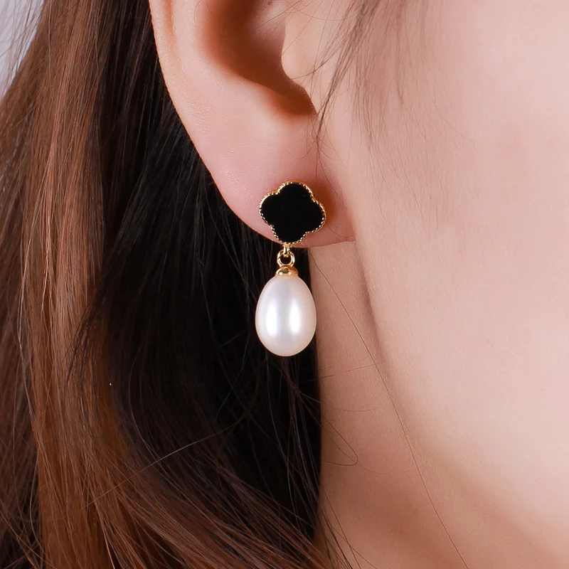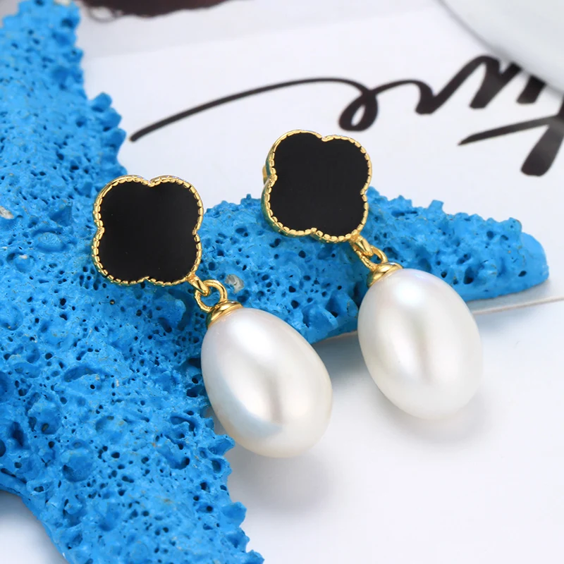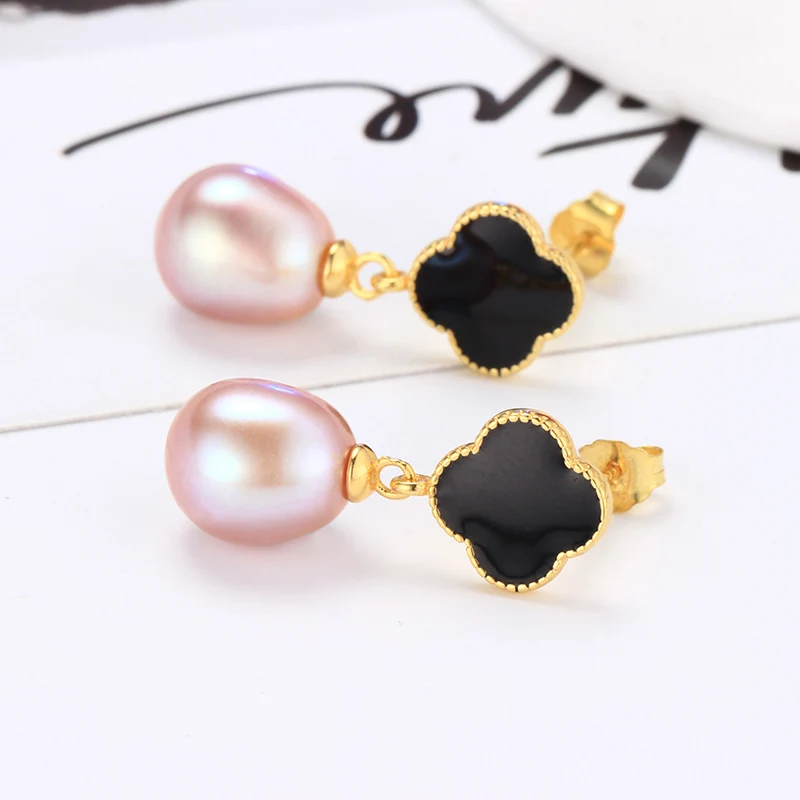 Standard Beautiful Pearl Earrings The New Four-leaf Clover Pearl Earrings Silver 925 Jewelry Simple Earrings for Women