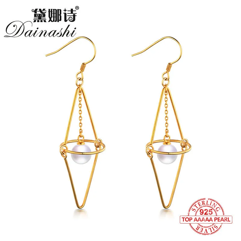 unique 925 sterling silver real high quality round pearl long drop earrings for women top brand fine jewelry