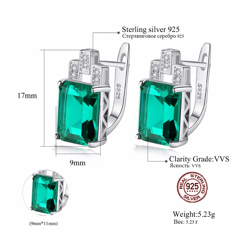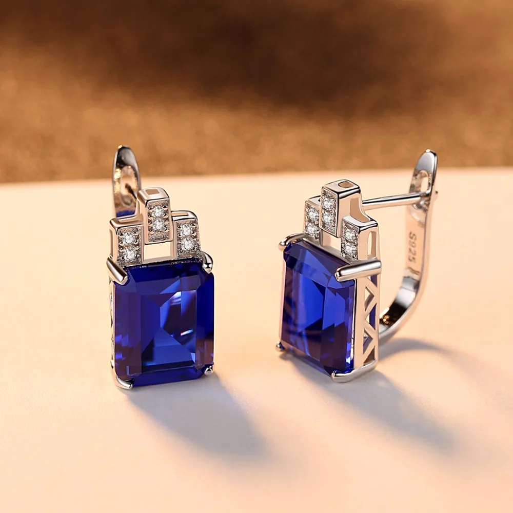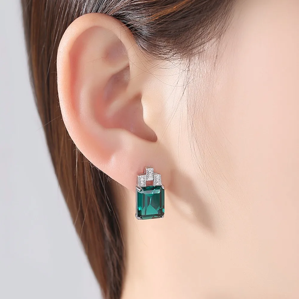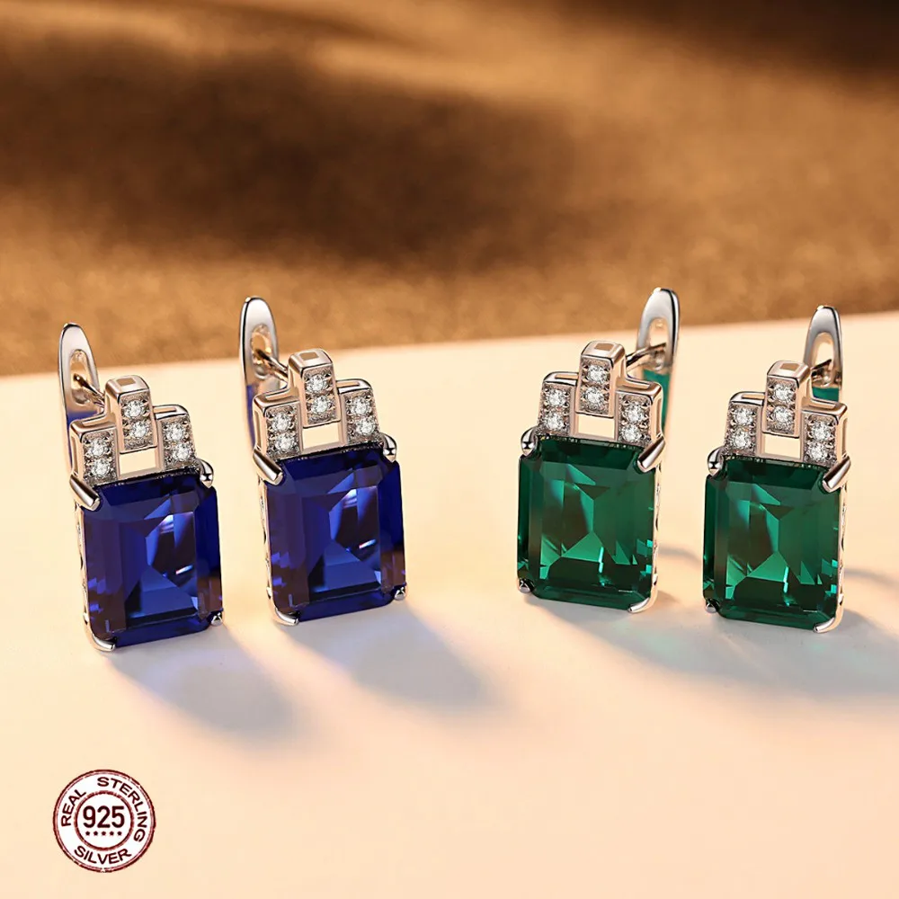 Diamond Clip On Earrings, Luxury Created 7.6ct Nano Russian Simulated Emerald and Sapphire 925 Silver Clip earrings Women
