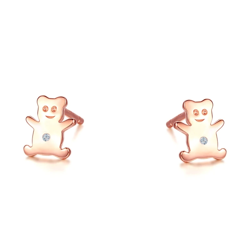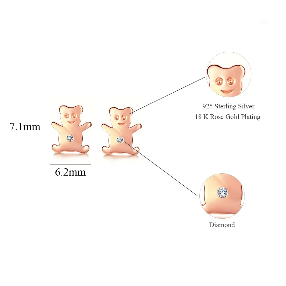 DOUBLE-R 0.01 Diamond earrings 925 sterling silver Fine Jewelry for women Bear Stud Earrings Diamond Jewelry