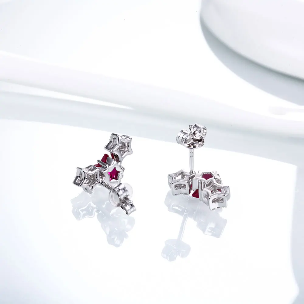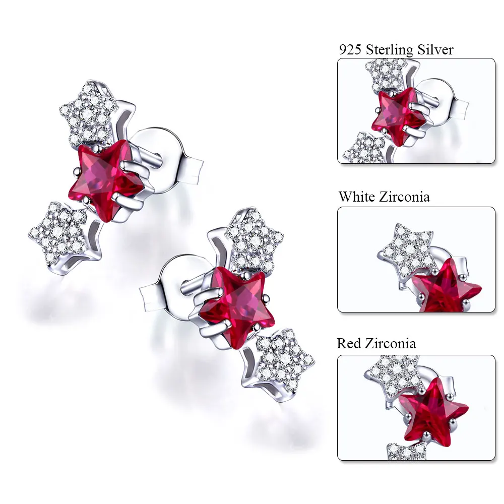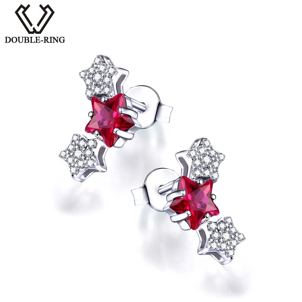 DOUBLE-R Lovely Star Earrings For Girls 925 Sterling Silver Stud Earring With Created Ruby Rose Gemstone Jewelry