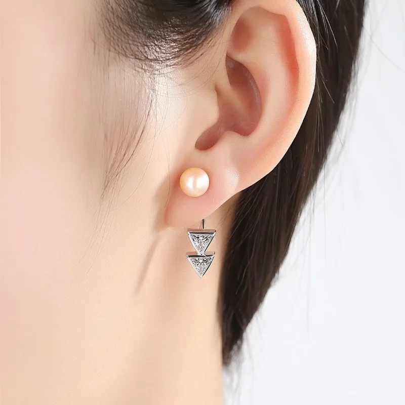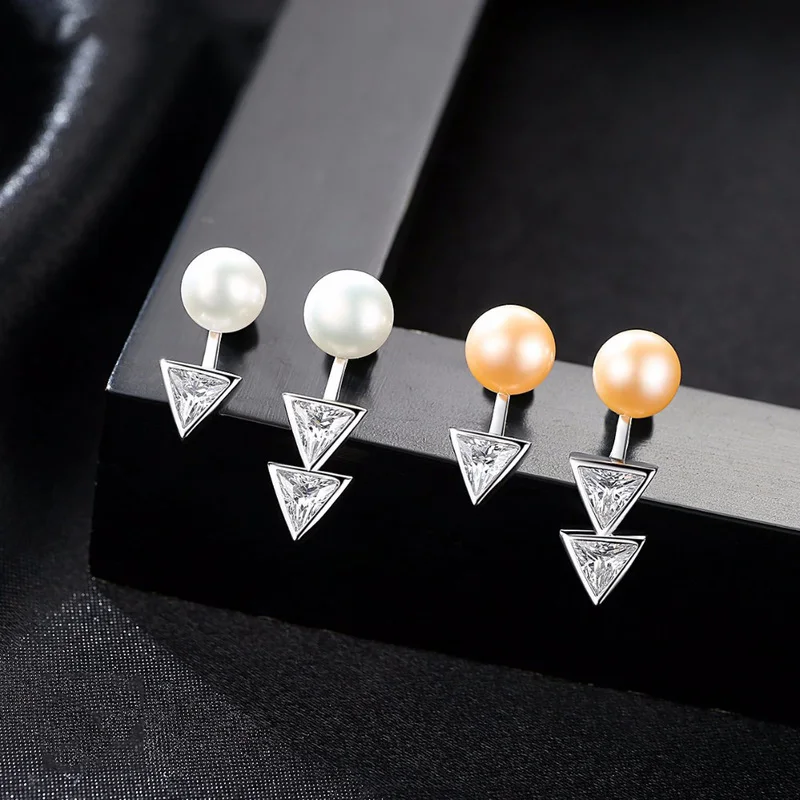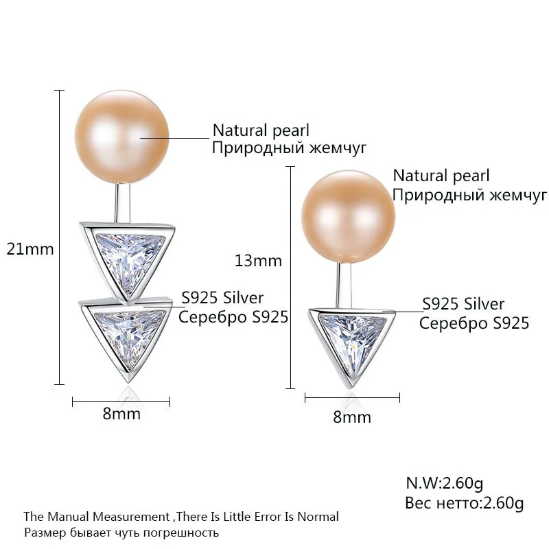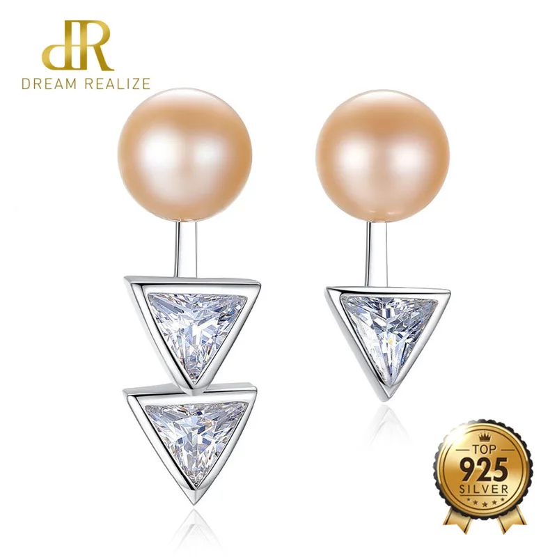DR 7-7.5mm Natural Pearl Stud Earrings for Women Geometry Asymmetry Style 925 Sterling Silver Earring Women Jewelry