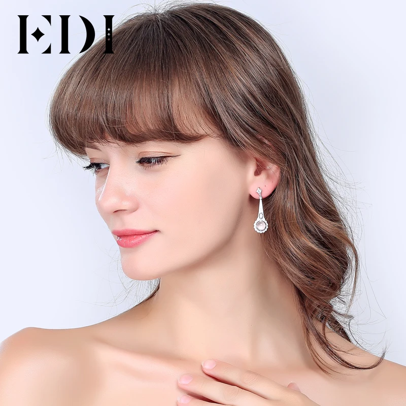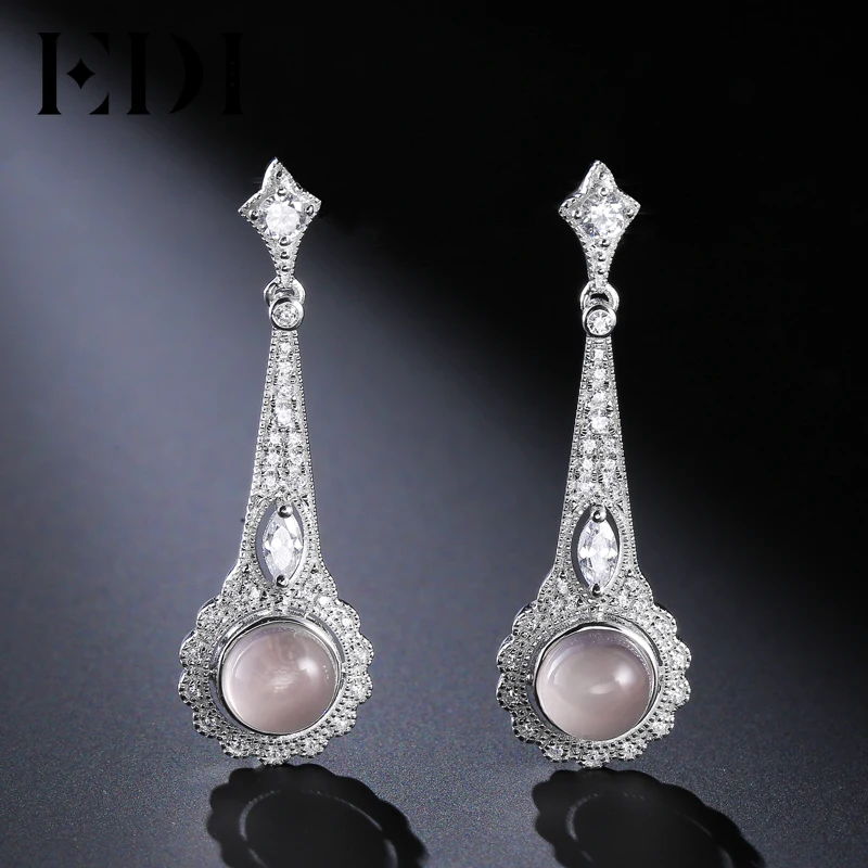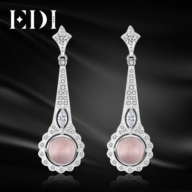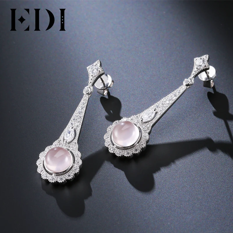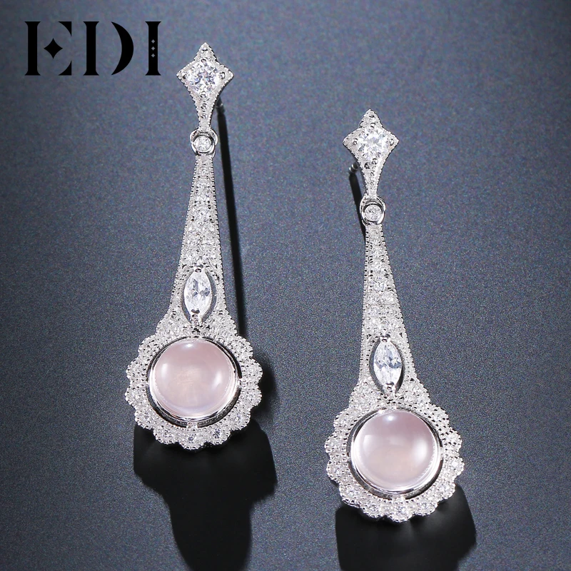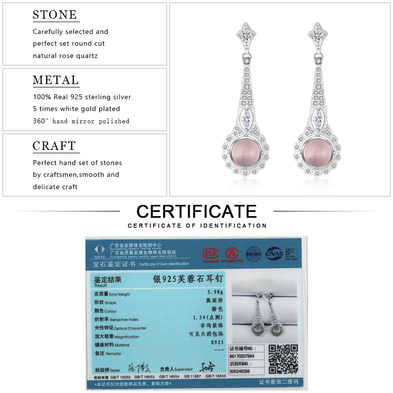 2020 Woman Natural Round Pink Rose Quartz Dangle Earrings 925 Sterling Silver Drop Big Earring For Women Fine Jewelry Party