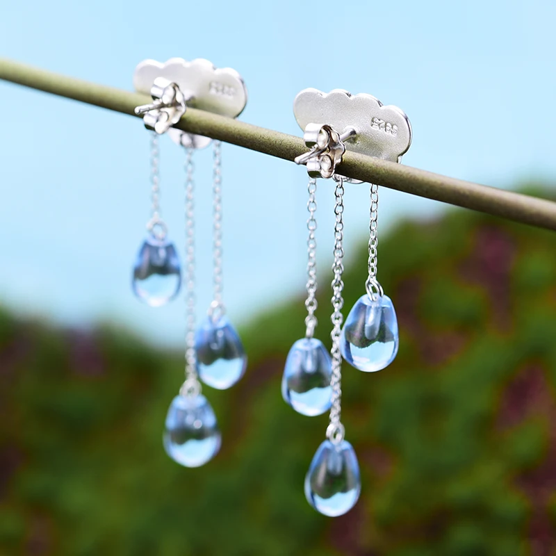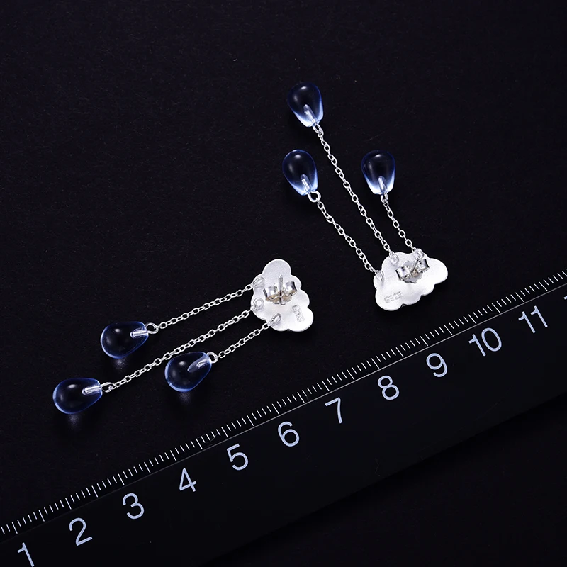 Real 925 Sterling Silver Natural Handmade Fine Jewelry Ethnic Cloud Long Tassel Dangle Earrings for Women Brincos