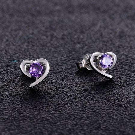 Wholesale Fashion Earrings For Women 925 Sterling Silver Jewelry Love Heart Amethyst Stud Earrings Birthd gift on sale