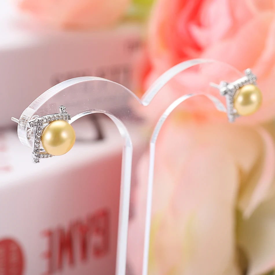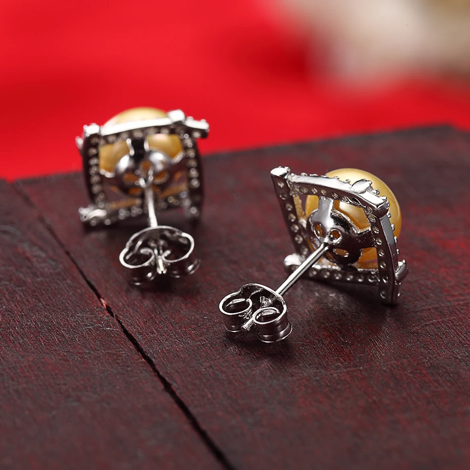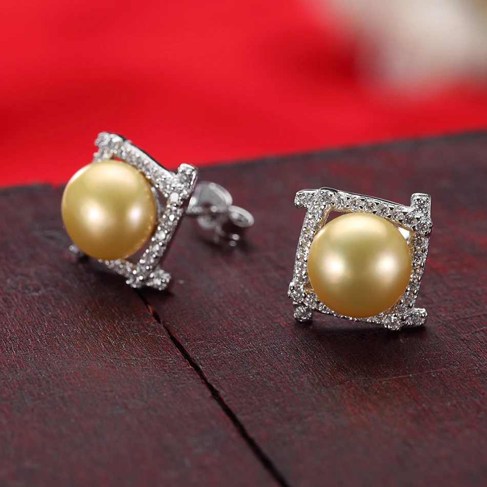 Stud Earrings 8-9MM Golden Pearls High Quality Silver 925 Earrings Fine Jewelry Zirconia Brincos for Women