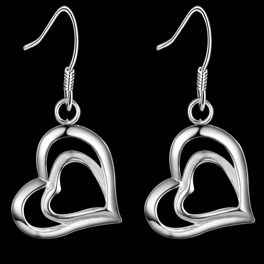 Fine Charms 925 Sterling Silver romantic love heart Earrings for Women party wedding Jewelry Pretty Couple gifts