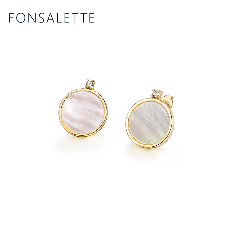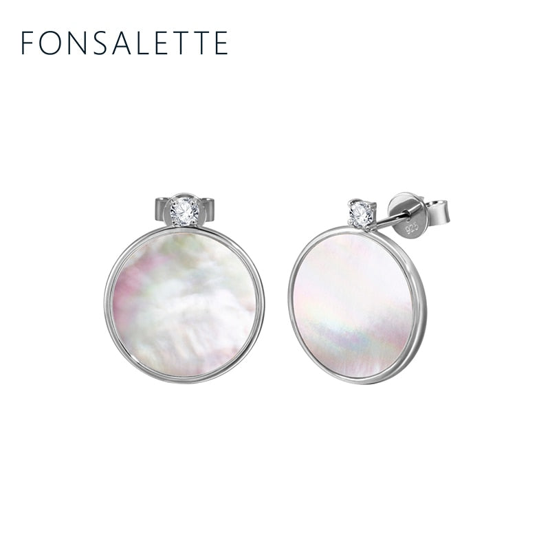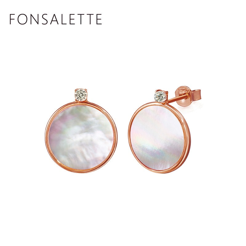 925 Sterling Silver 18K Gold Tone Cubic Zircon Natural Shell Stud Earrings Round Mother of Pearl Earrings GirlsZK30