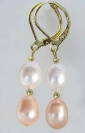 free shipiing 9x12mm white pink south sea natural drop pearl earring 14K/20