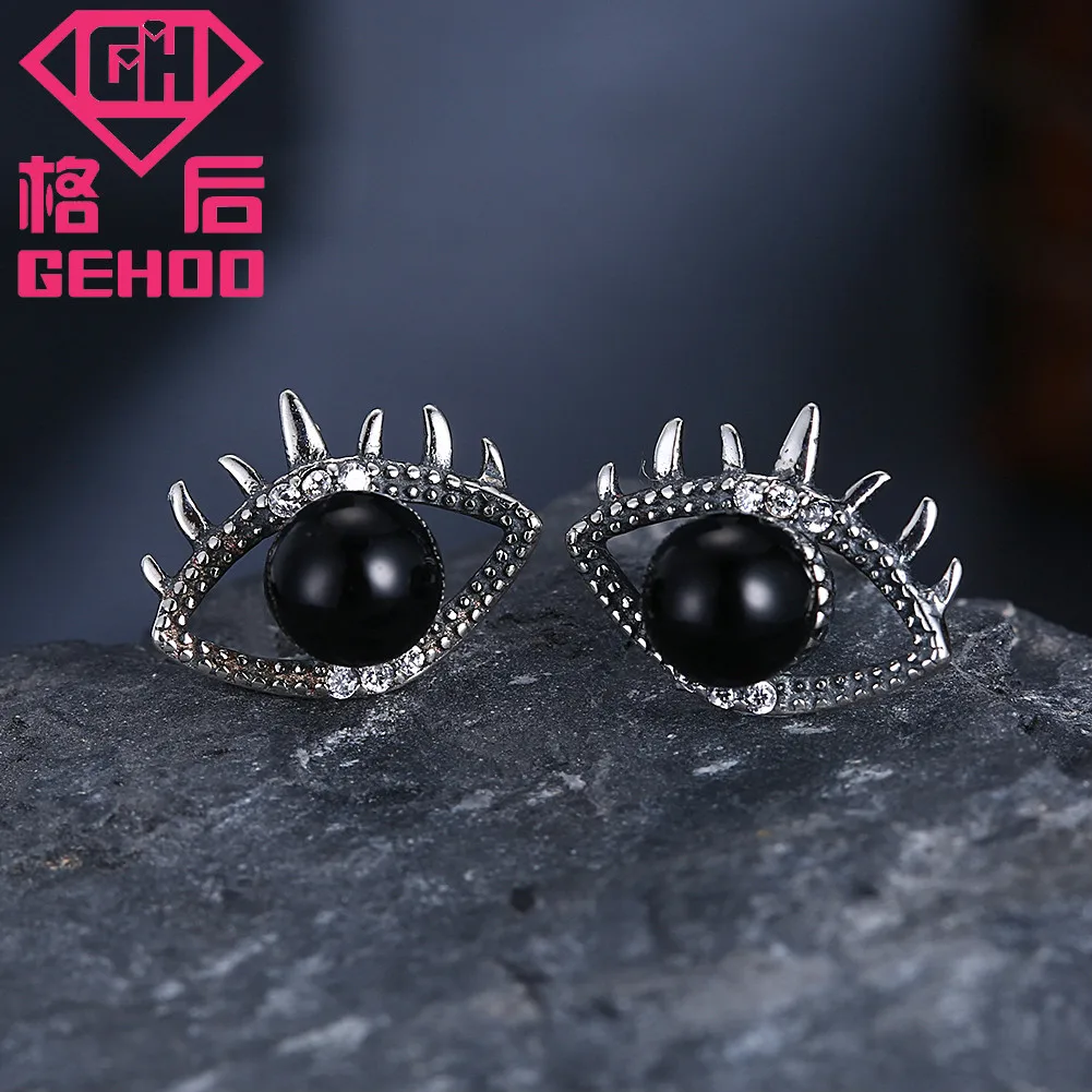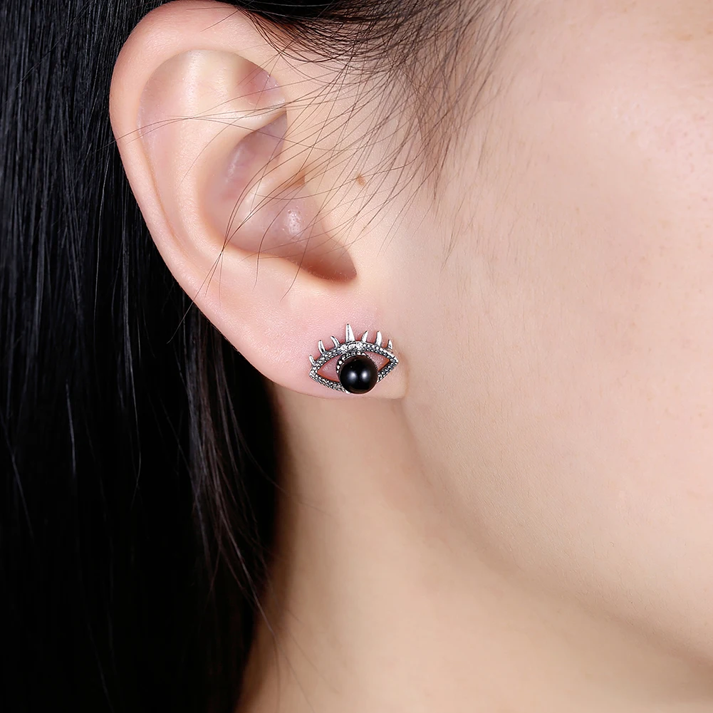 2020 New Arrival 925 Sterling Silver Eye Shape Charm Earrings Black Color Stone Stud Earring Brincos Women Jewelry Gifts