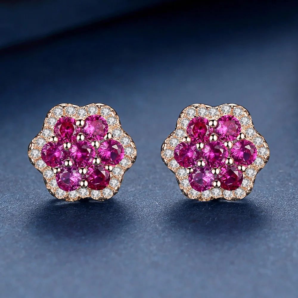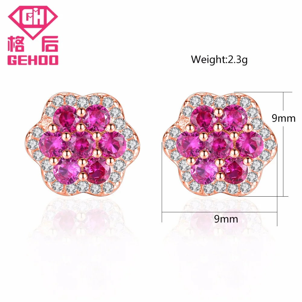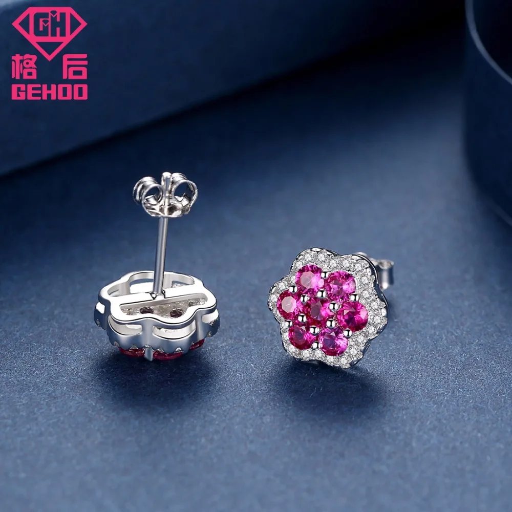 Zircon Paved Real 925 Sterling Silver Oval Red Pretty Gem Retro Ruby Earrings Wedding Women Mom Jewelry Gifts Brincos