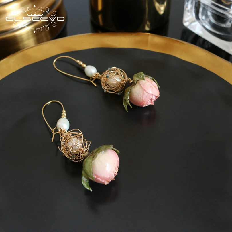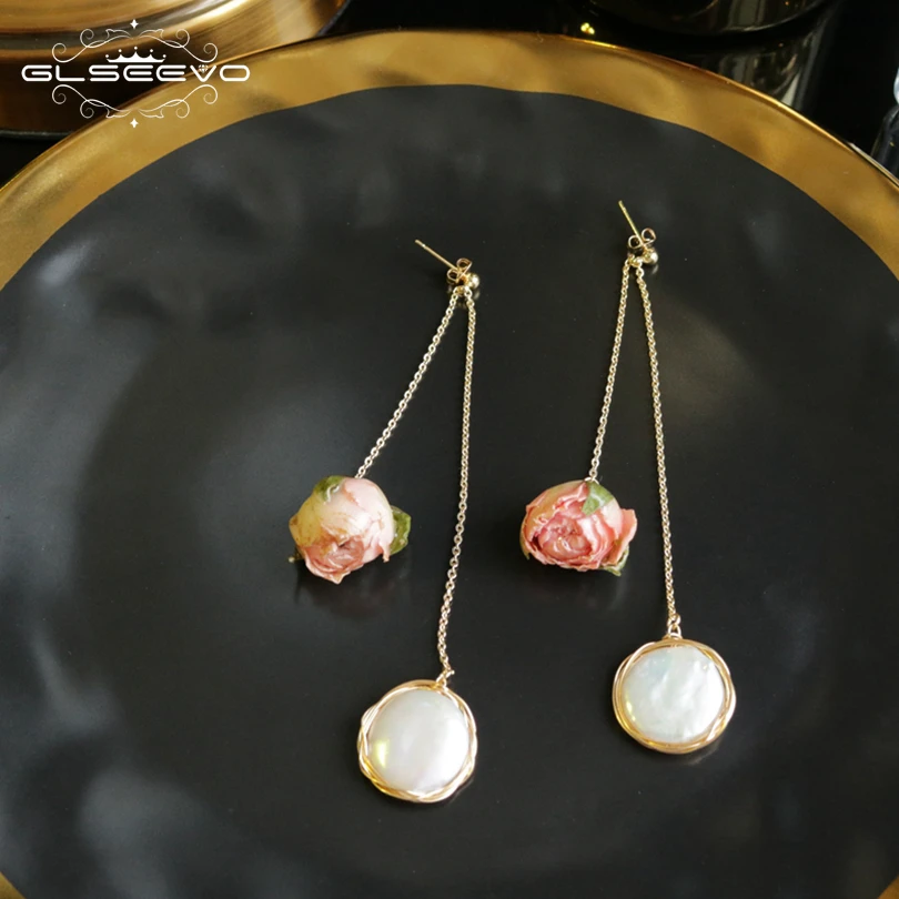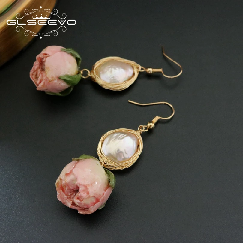 Natural Fresh Water Baroque Pearl Dangle Earring Flower Drop Earrings Gifts For Women Fine Jewelry GE0492