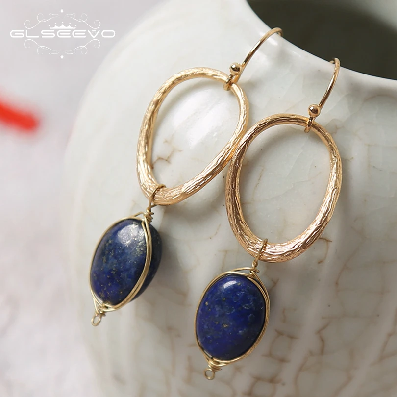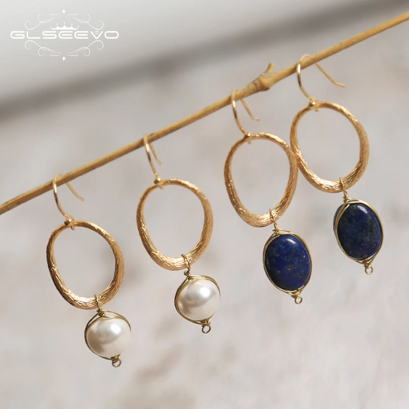Natural Fresh Water Baroque Pearl Lapis Lazuli Handmade Water Drop Earrings For Women Drop Earring Fine Jewellery GE0553