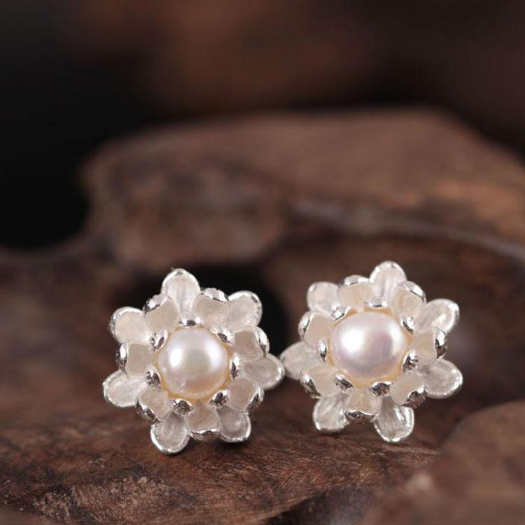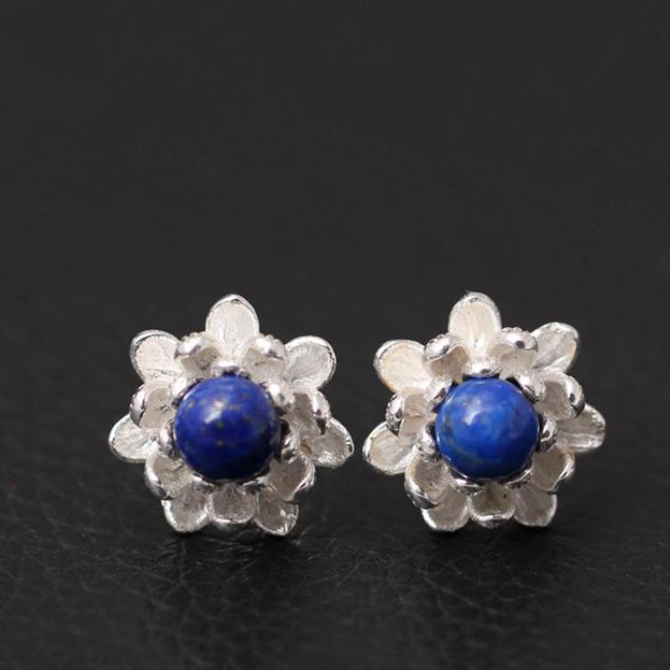 GQTORCH 925 Sterling Silver Flower Lotus Earrings China Wind Beautiful Art With Natural Lapis Lazuli And Pearls Fine Jewelry