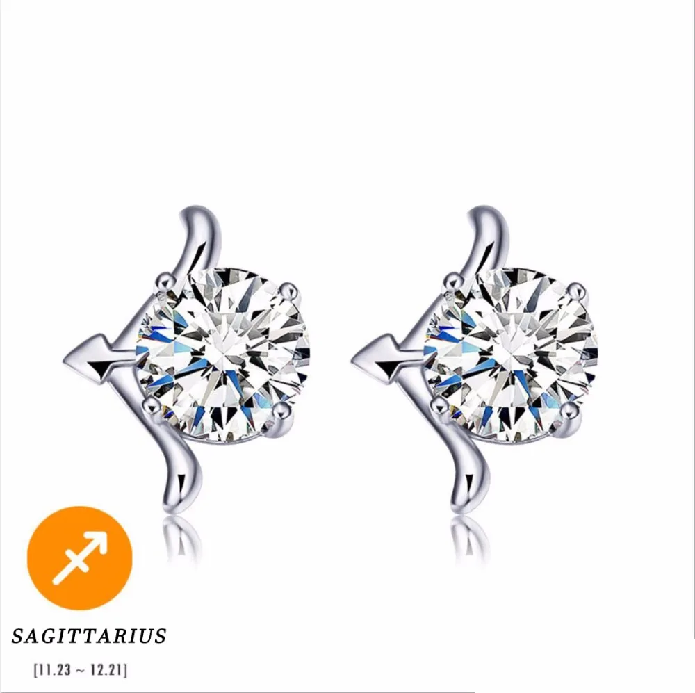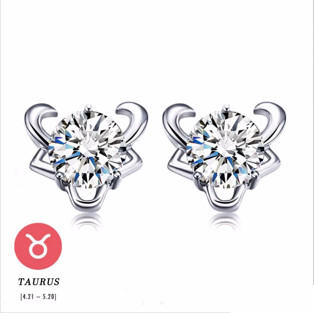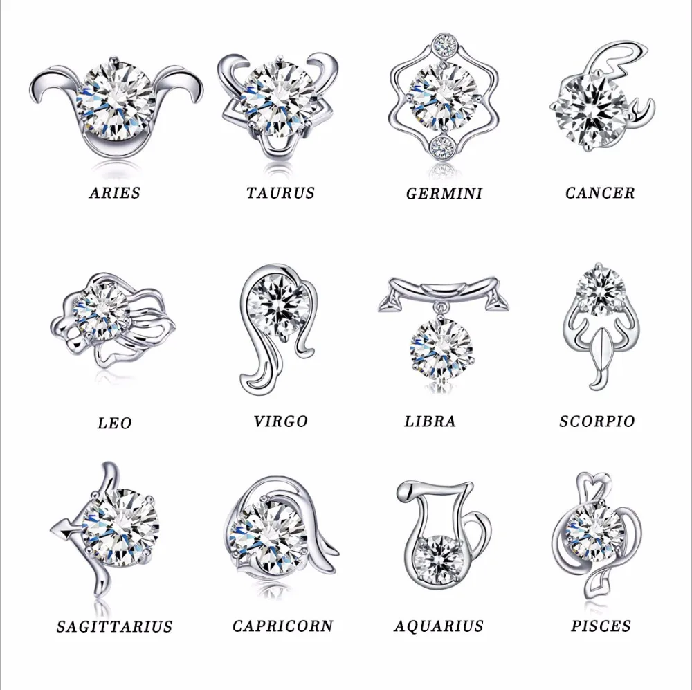 925 Sterling Silver Constellation Signs of the Zodiac Stud Earrings With Austrian Crystal Female Women PE107