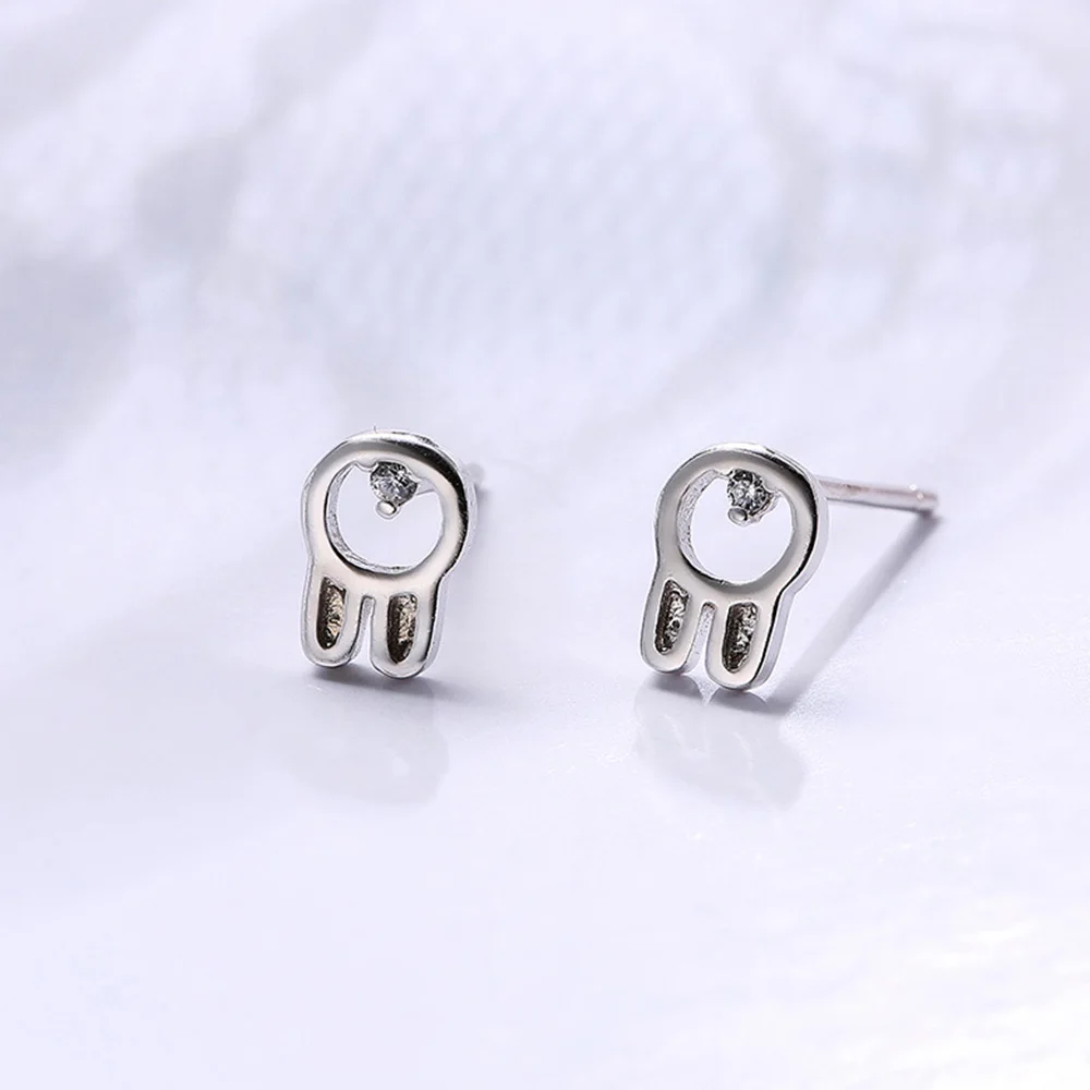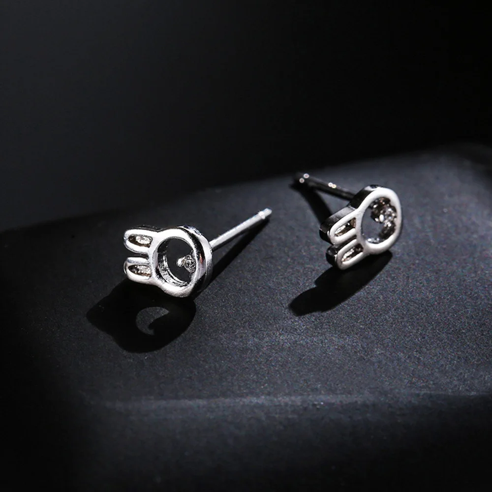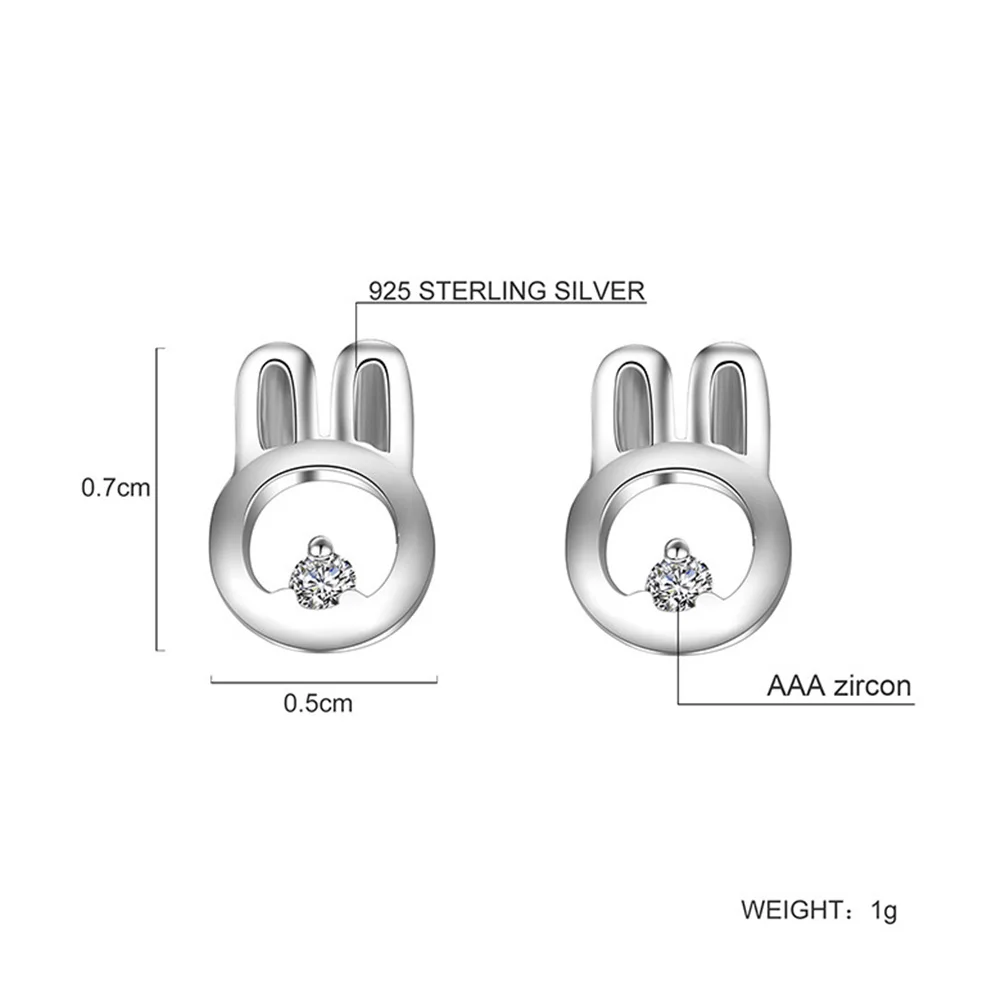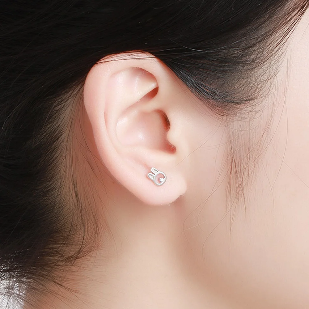 Hengyi Authentic 100% 925 Sterling Silver Naughty Little Rabbit Ear Stud Earrings for Women Christmas Gift