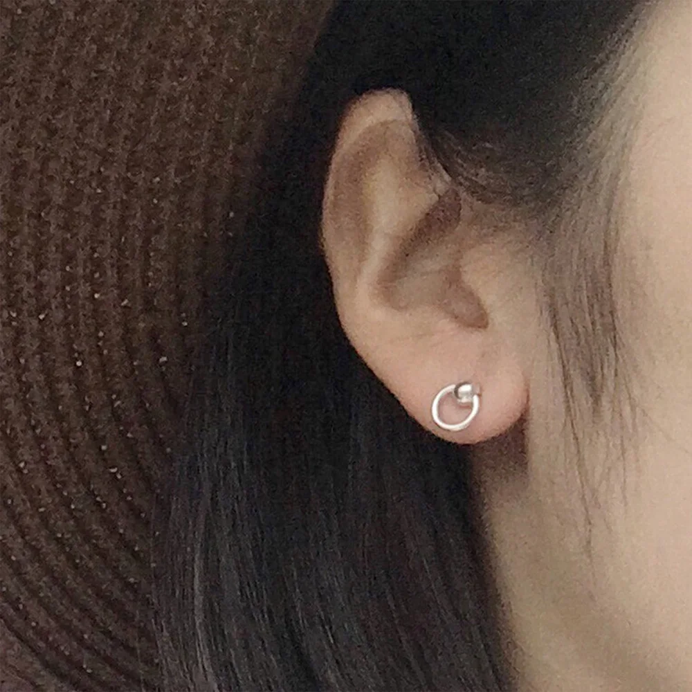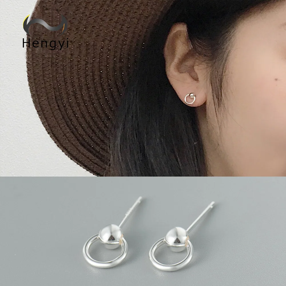 Hengyi Geometric Round Silver 925 Jewelry Stud Earring for Women Trendy Classic Party Brand Fine Jewelry