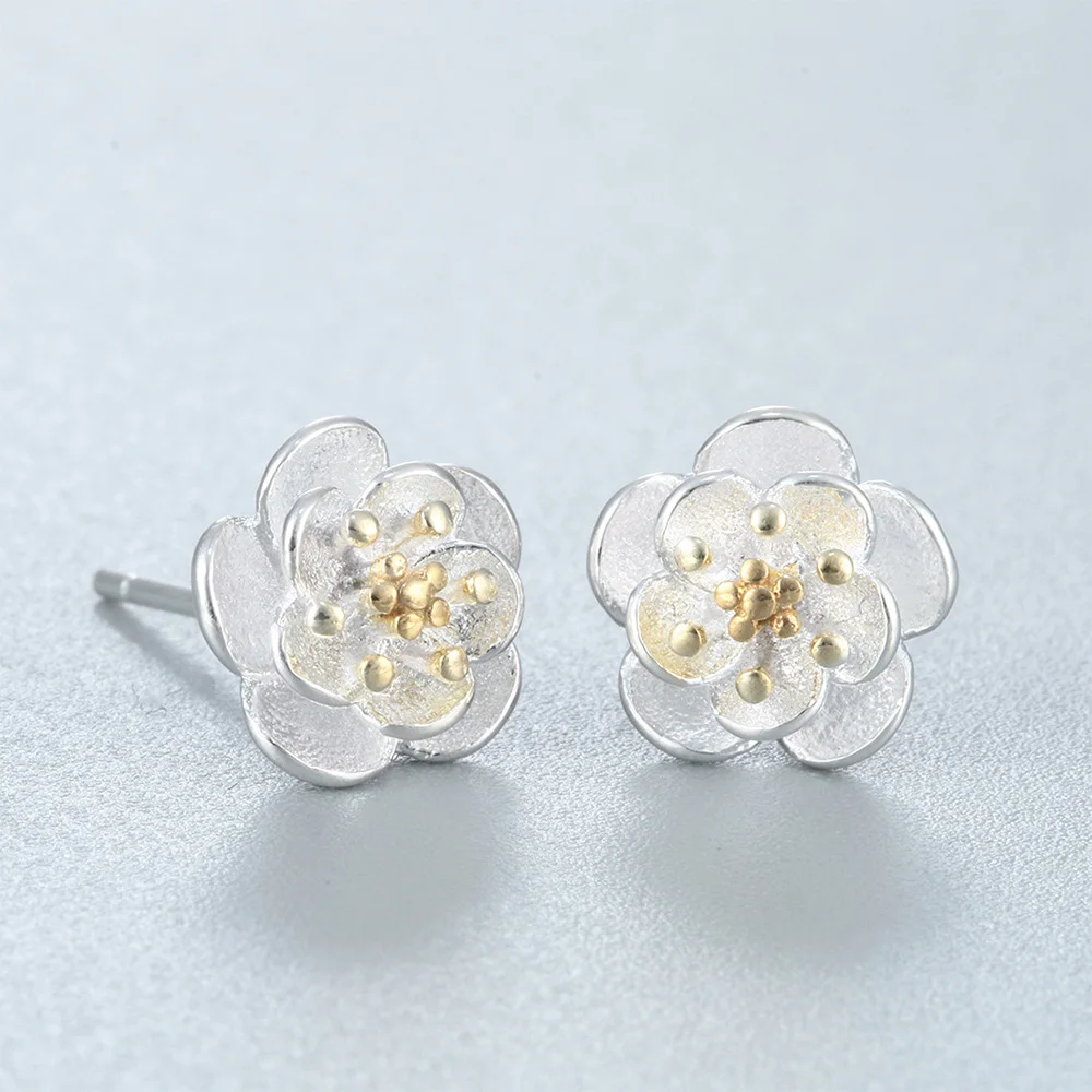 Hengyi Plant Flower 925 Sterling Silver Bride Stud Earrings for Women Wedding Anniversary Silver 925Jewelry