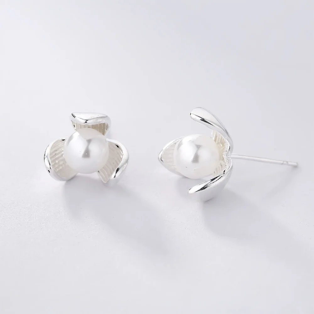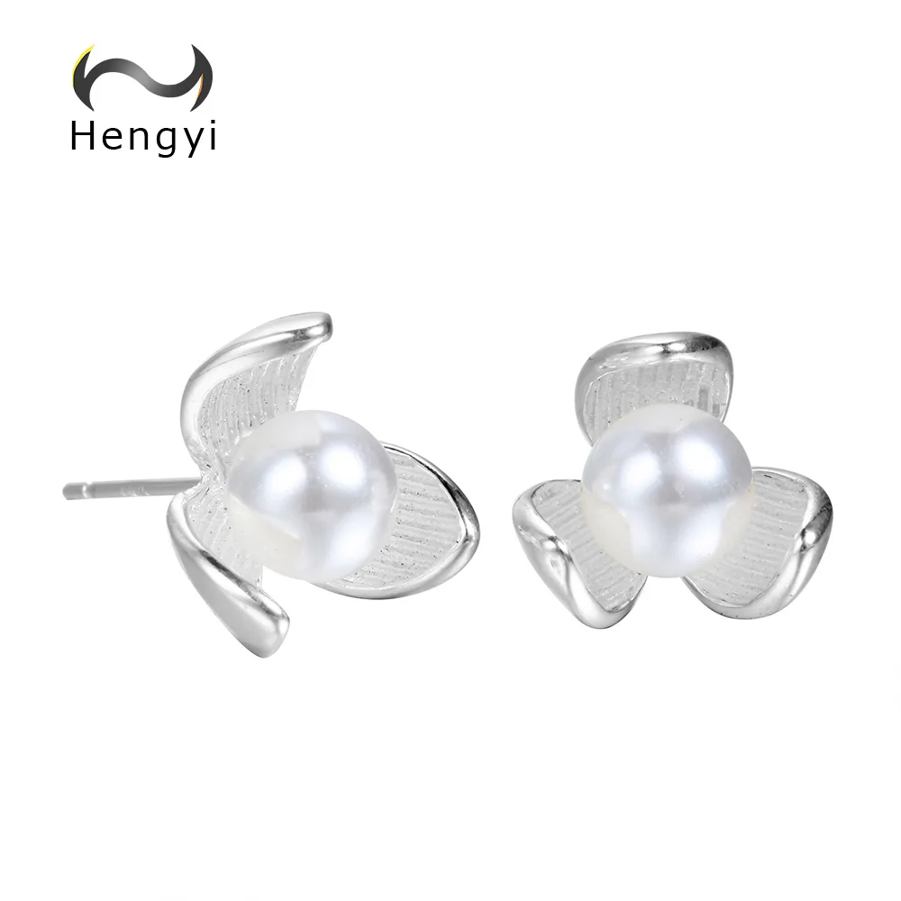 Hengyi Plant Flower 925 Sterling Silver Stud Earrings for Women Romantic Lovely Wedding Bride Gifts Jewelry