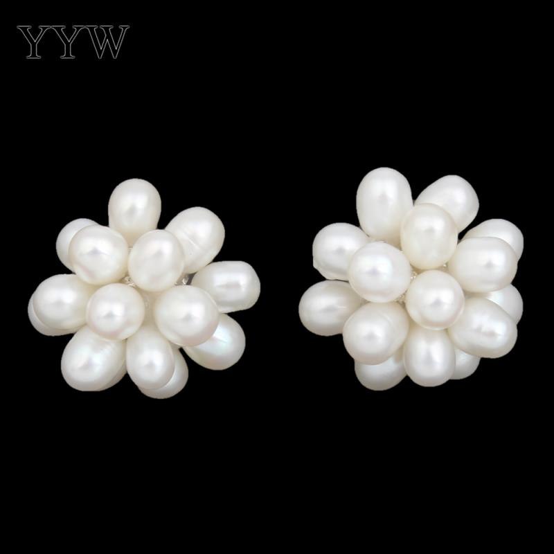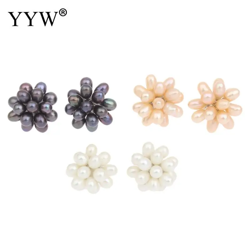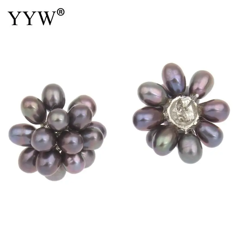 High Quality Natural Real Pearl Stud Earrings Flower White Pink Purple Black Grey Wedding Pearl Stud Earrings