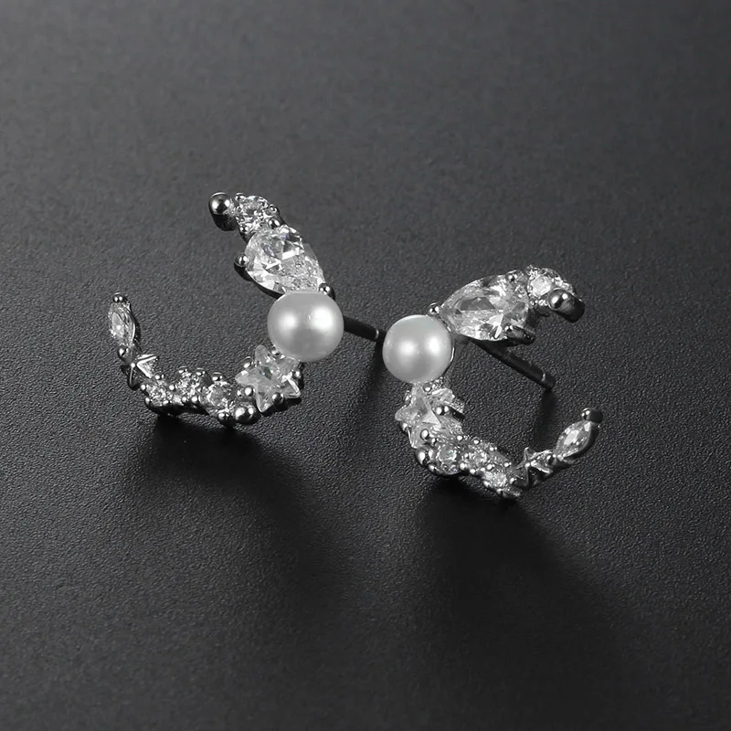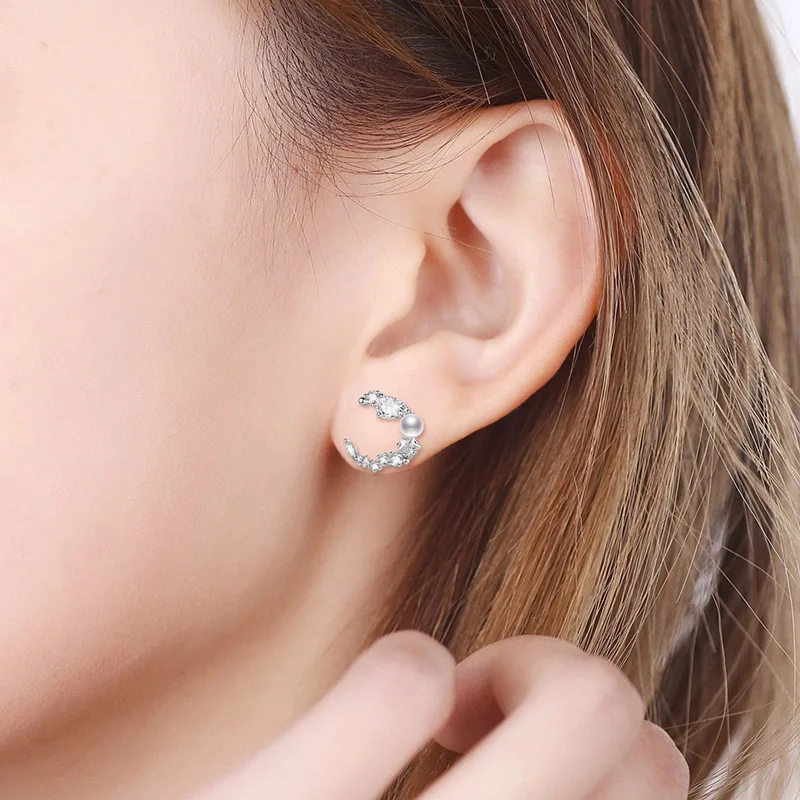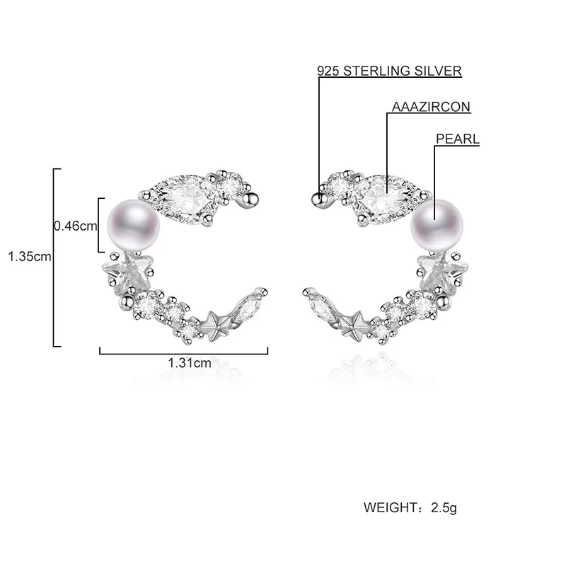 2020 Hot Sell Fashion Natural Pearl with 925 Sterling Silver Stars Stud Earrings for Women Girls Romantic Gift Bijoux