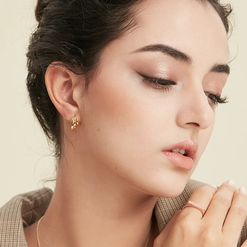 Hot Sale 925 Sterling Silver Multi-layer Hoop Earrings For Women Small Hollow Round Circle Earring Gold Color Jewelry Gift zk40