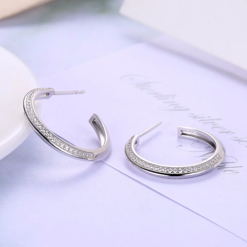 Classic 925 Sterling Silver CZ Crystal Big Round Hoop Earrings Women Ear Studs Jewelry Accessories Minimalist Bijoux