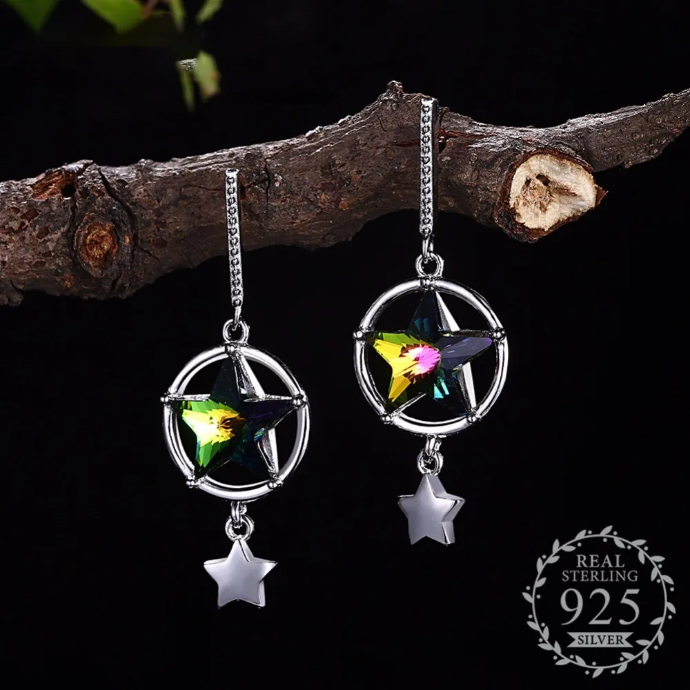 Luxurious Drop Earrings S925 Sterling Silver Micro Paved CZ Stone With Multi Star Natural Austria Crystal Dangle Brincos