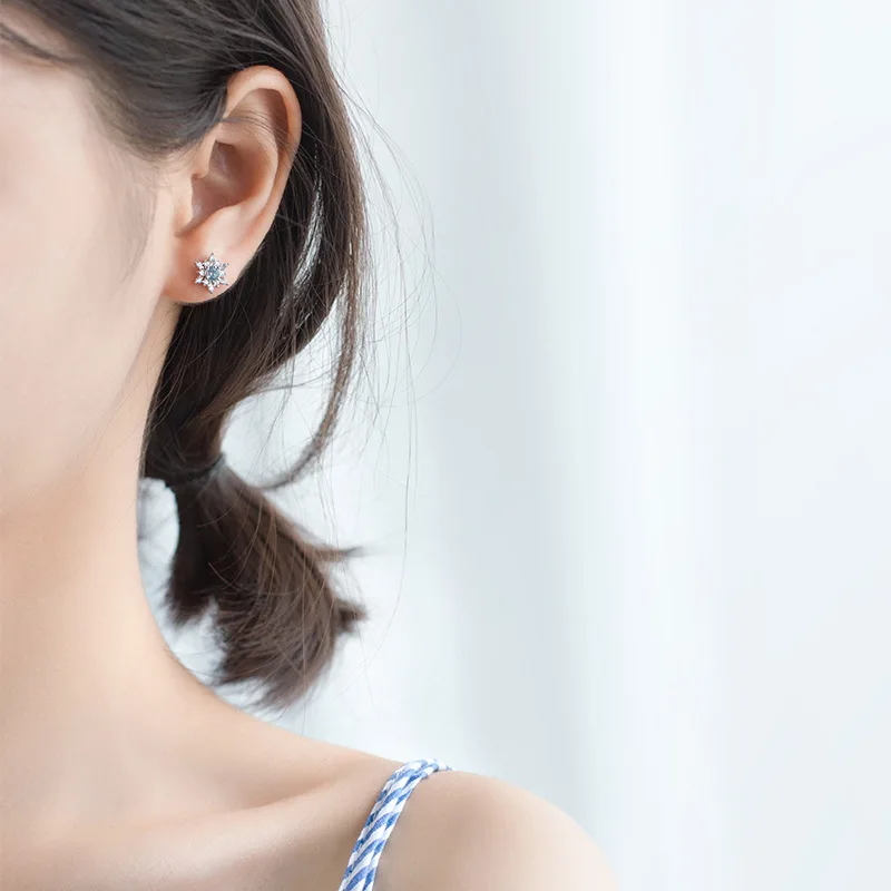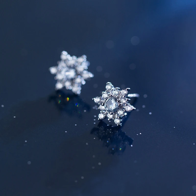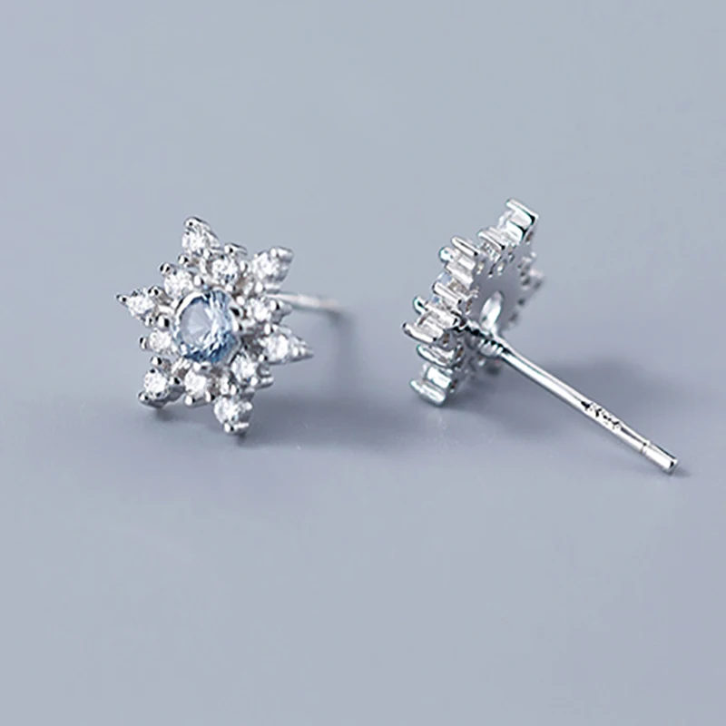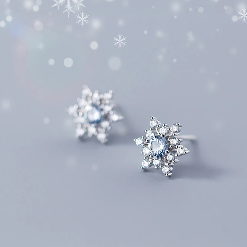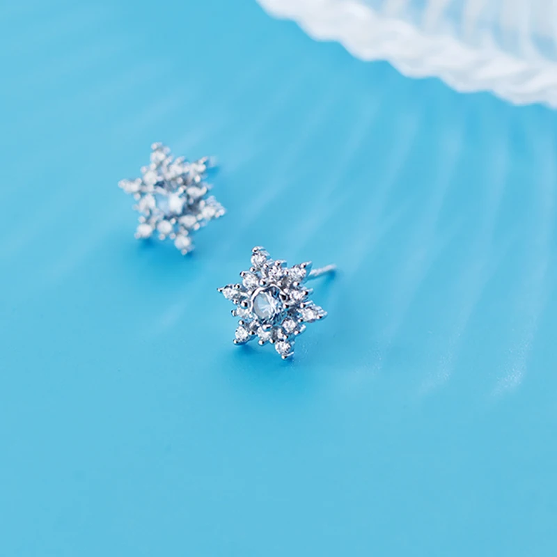 New Christmas Gift Snowflake Shape Stud Earrings 925 Sterling Silver Micro Paved CZ Crystal Brincos for Women Jewelry