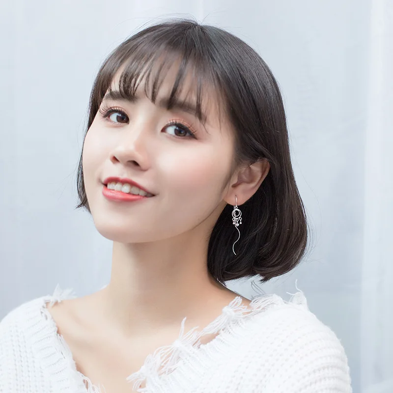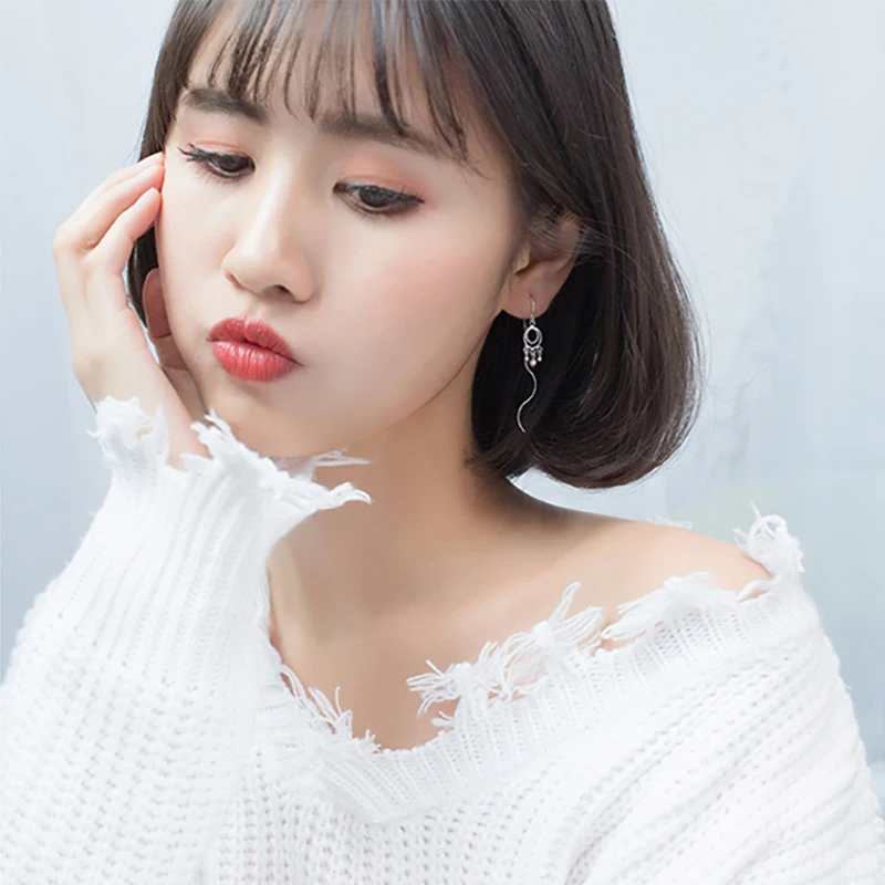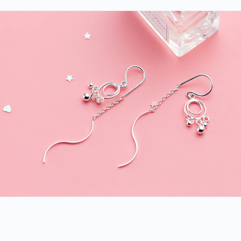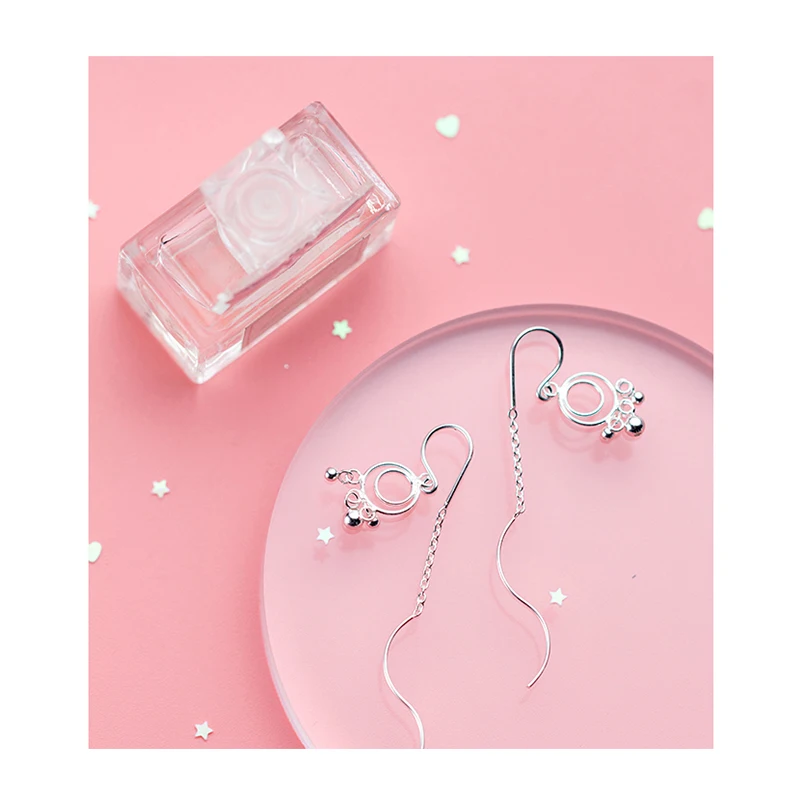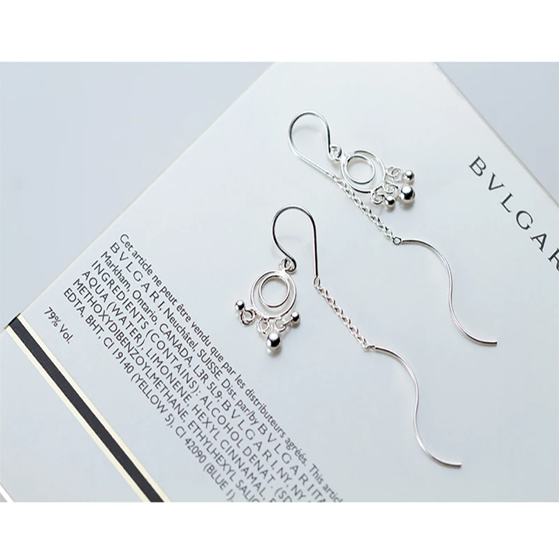 New Long Chain Ear Line S925 Sterling Silver Circle Round Bead Wave Dangle Drop Earrings for Women Girl Party Bijoux