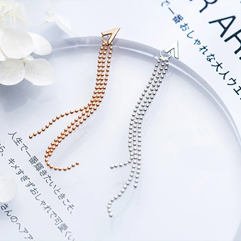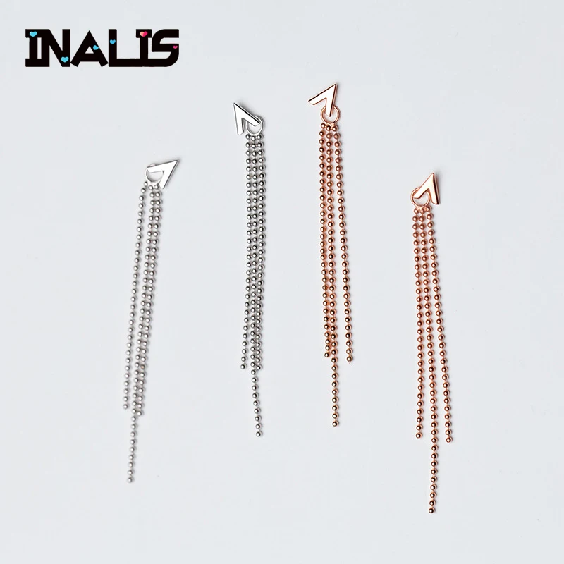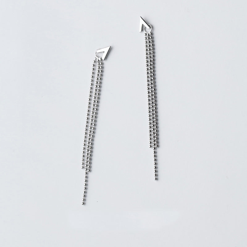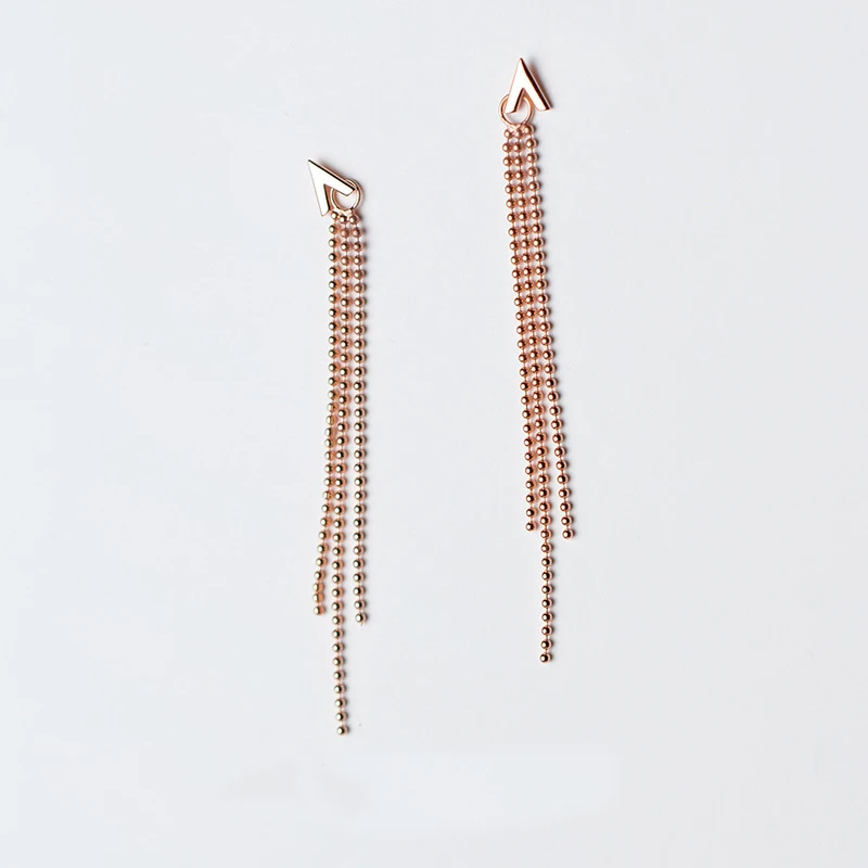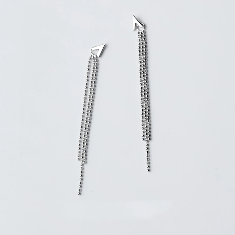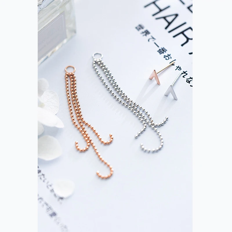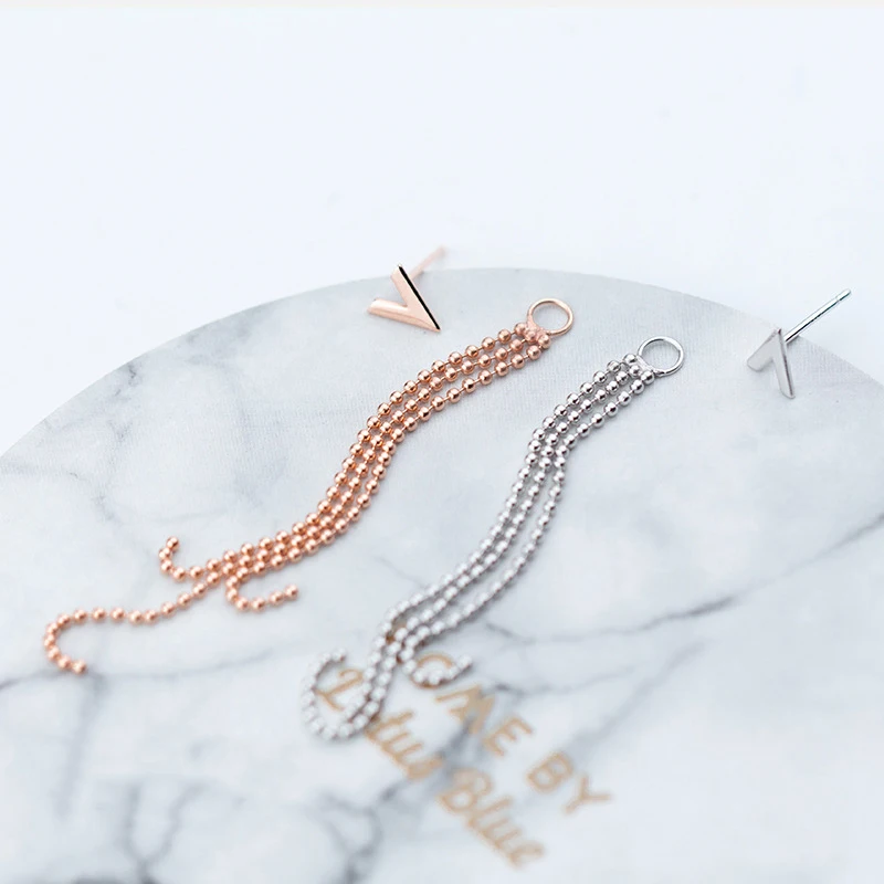 New Long Ear Line S925 Sterling Silver V Word with Light Beads Tassel Drop Earrings Double Side Two Use Brincos Jewelry