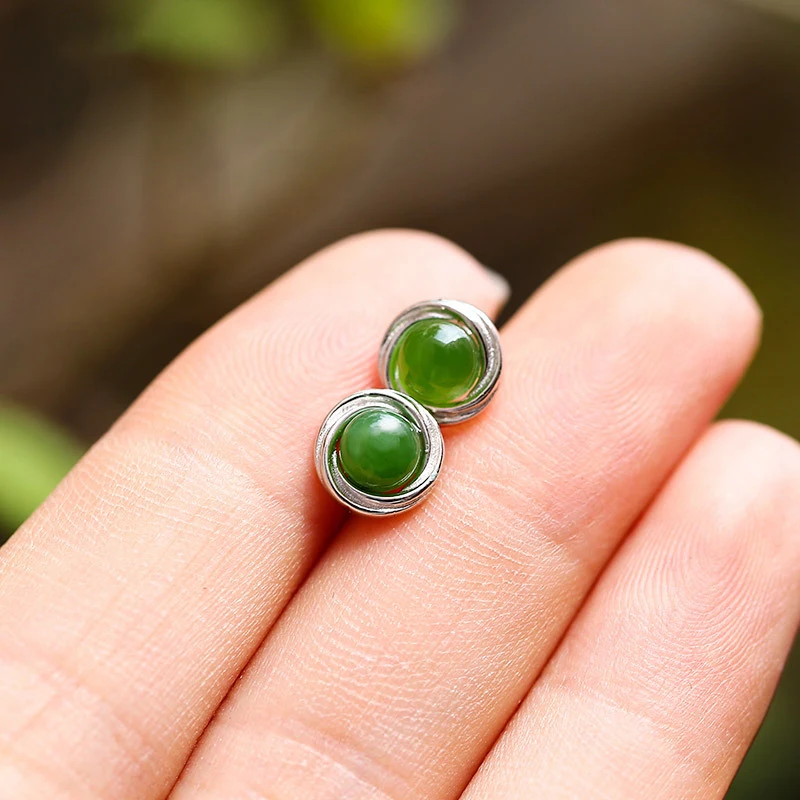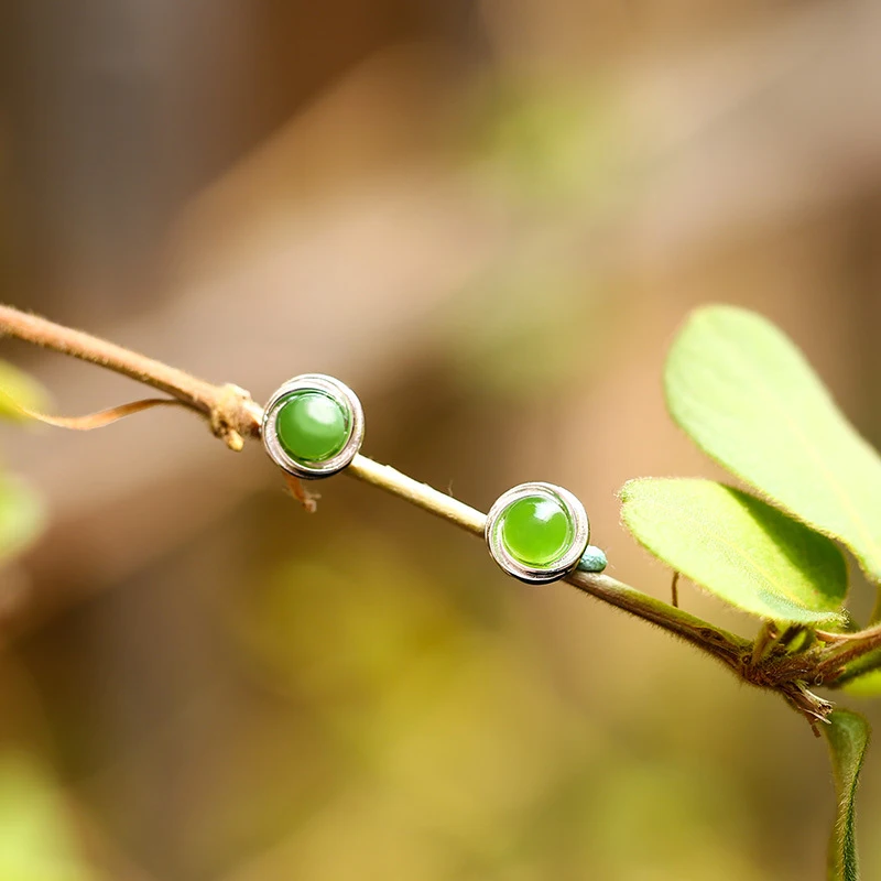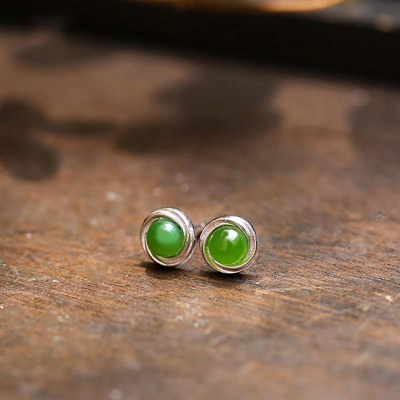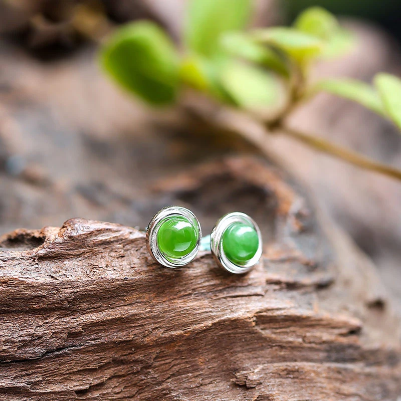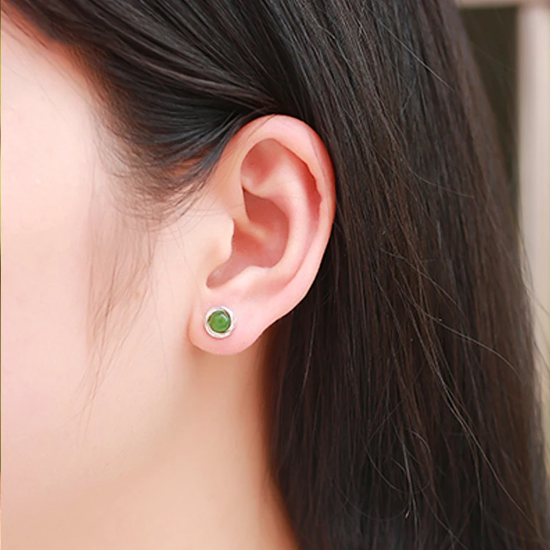 Simple Design 925 Sterling Silver Round Flower Stud Earrings Statement Natural Jader Jasper Brincos for Women Jewelry