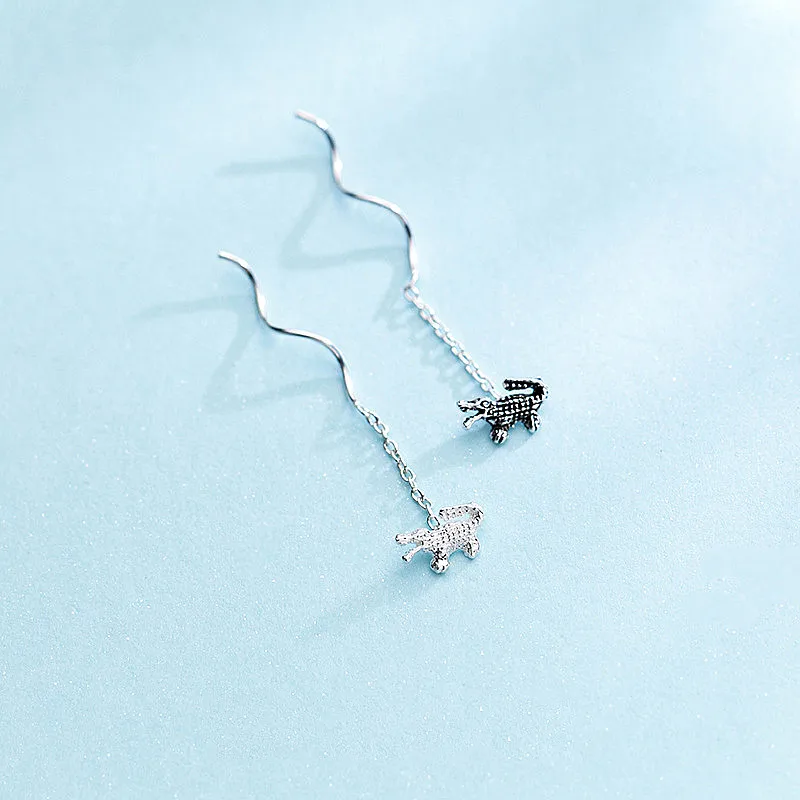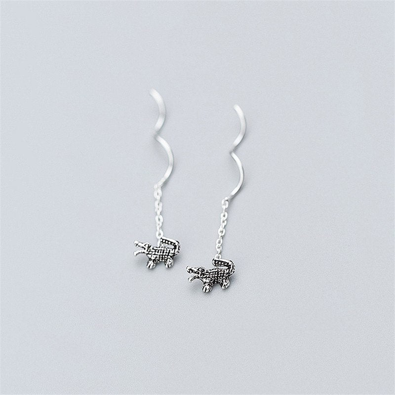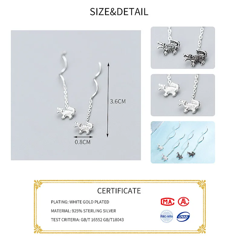 Hyperbole Real 925 Sterling silver Short Chain Tassel Crocodile Drop Earrings 2020 Fine Jewelry For Women Accessories