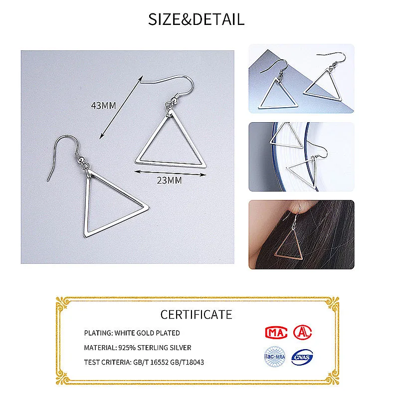 Minimalist Geometric Triangle Dangle Drop Earrings Charm 925 Sterling Silver Fine Jewelry Two Styles For Women Party Gift