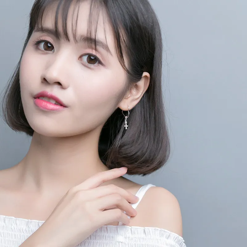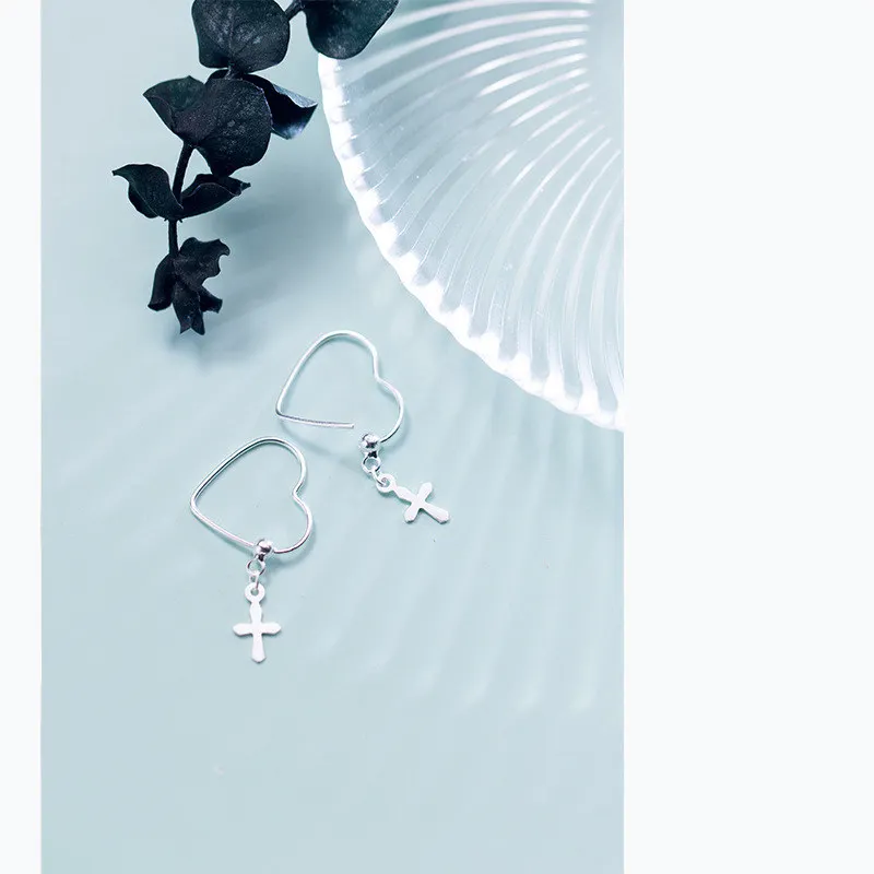 Real 925 Sterling Silver Cute hollow Heart Hoop Earrings Cross Beads Star Earring Female 2020 Fine Jewelry Oorbellen