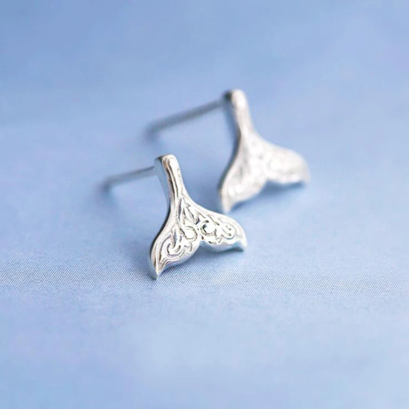 925 Silver Fashion Fish Dolphin Tail Stud earrings for Women Animal Mermaid Whale Tail Earrings Bridesmaid Jewelry Gifts