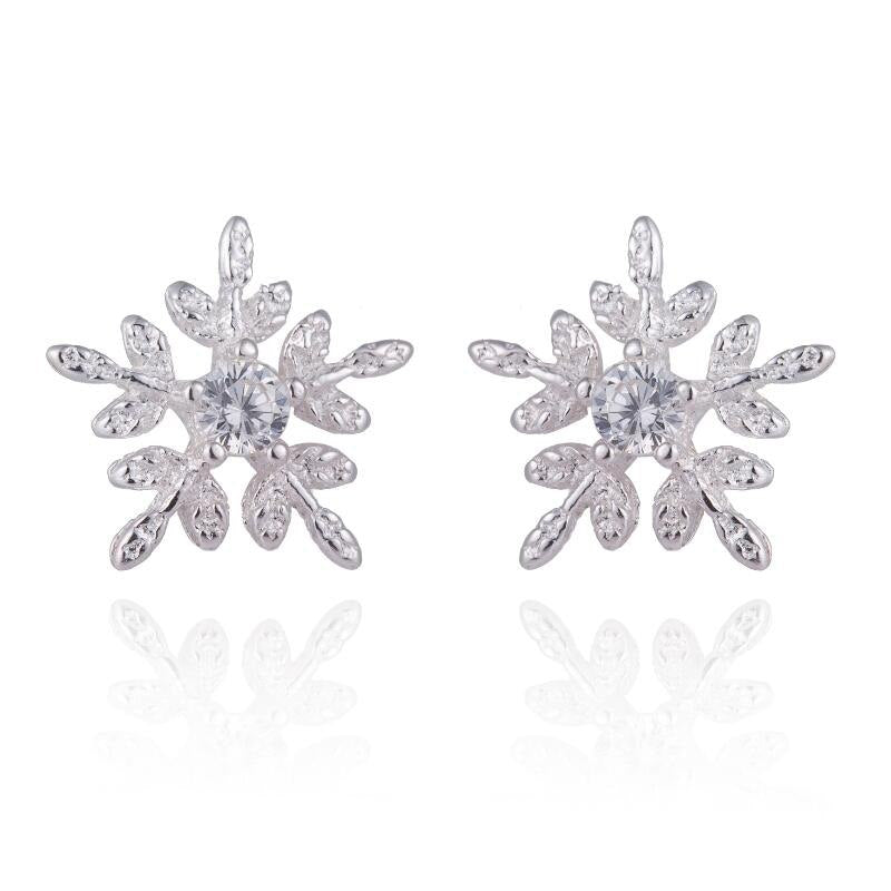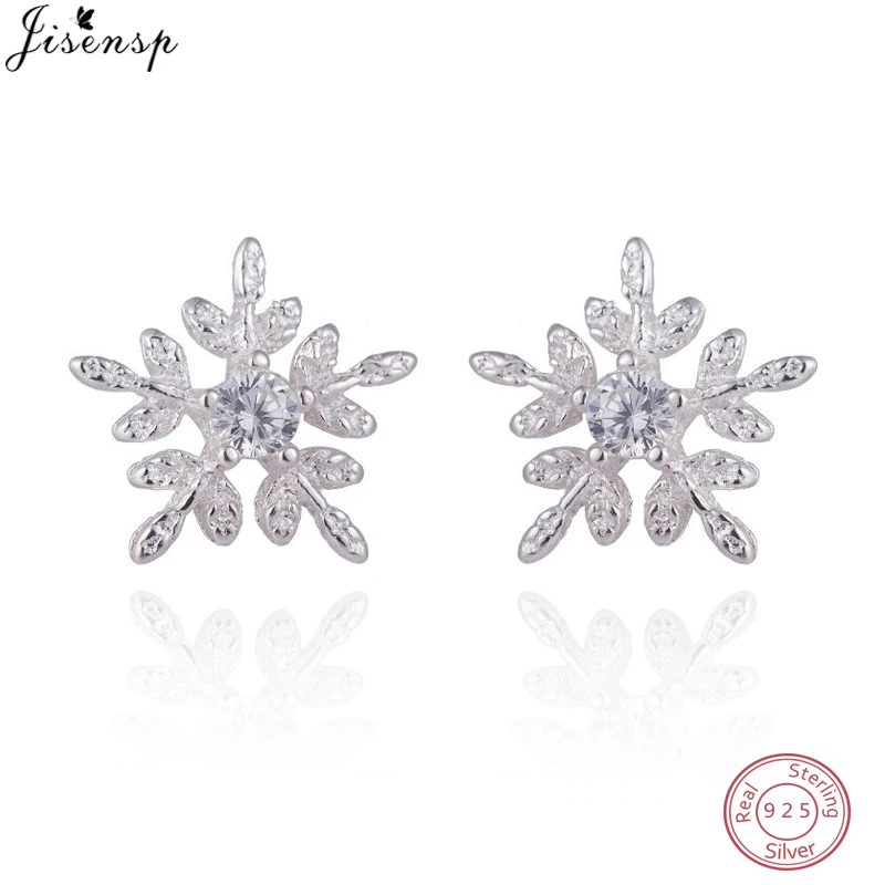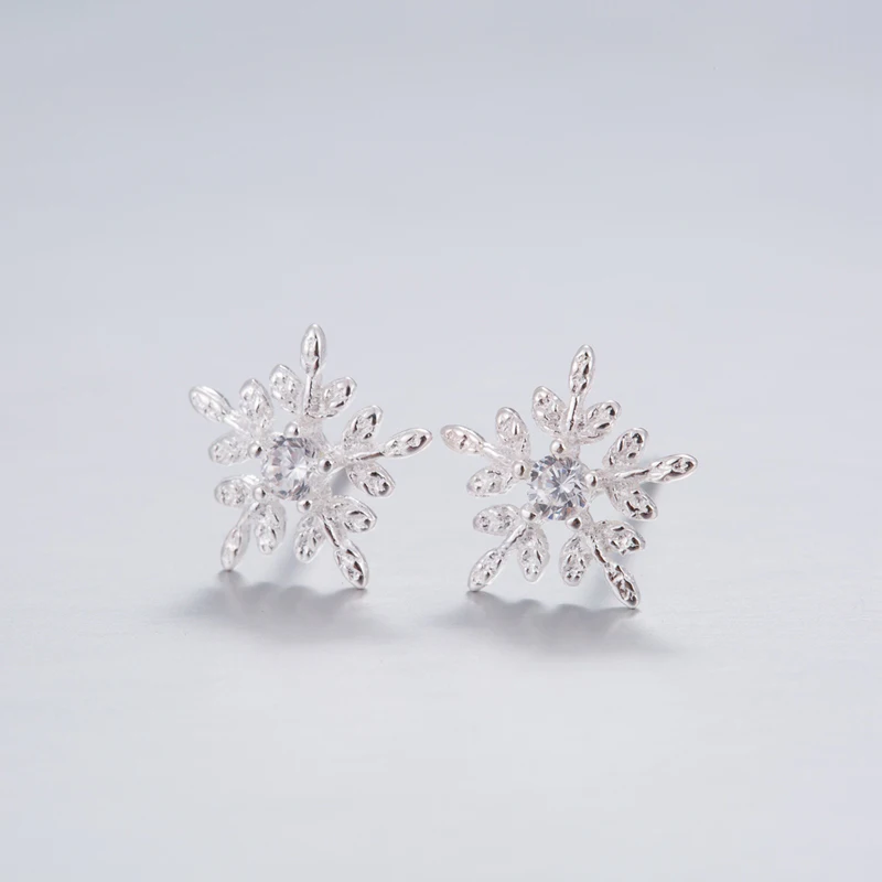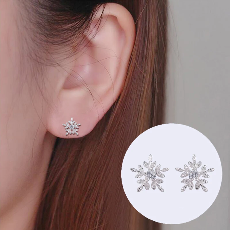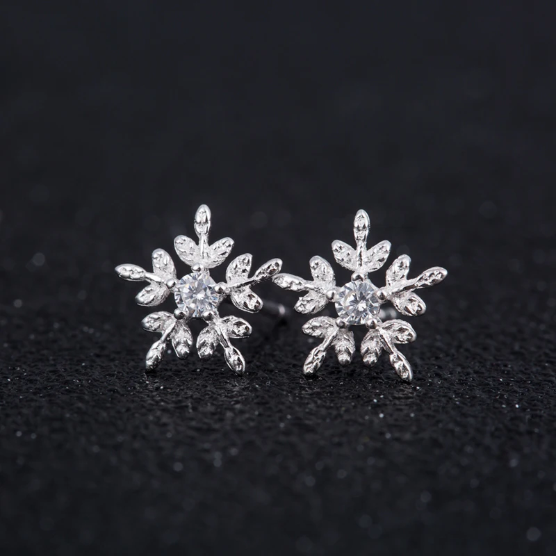 925 Sterling Silver Cubic Zirconia Cute Snowflake Stud Earrings for Women Valentines D Gift Creative Fashion Jewelry