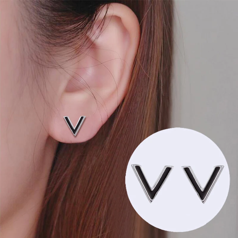 925 Sterling Silver Jewelry Simple Letter V Shape Stud Earrings for Women Party Gift Cute Geometric Earrings Oorbellen
