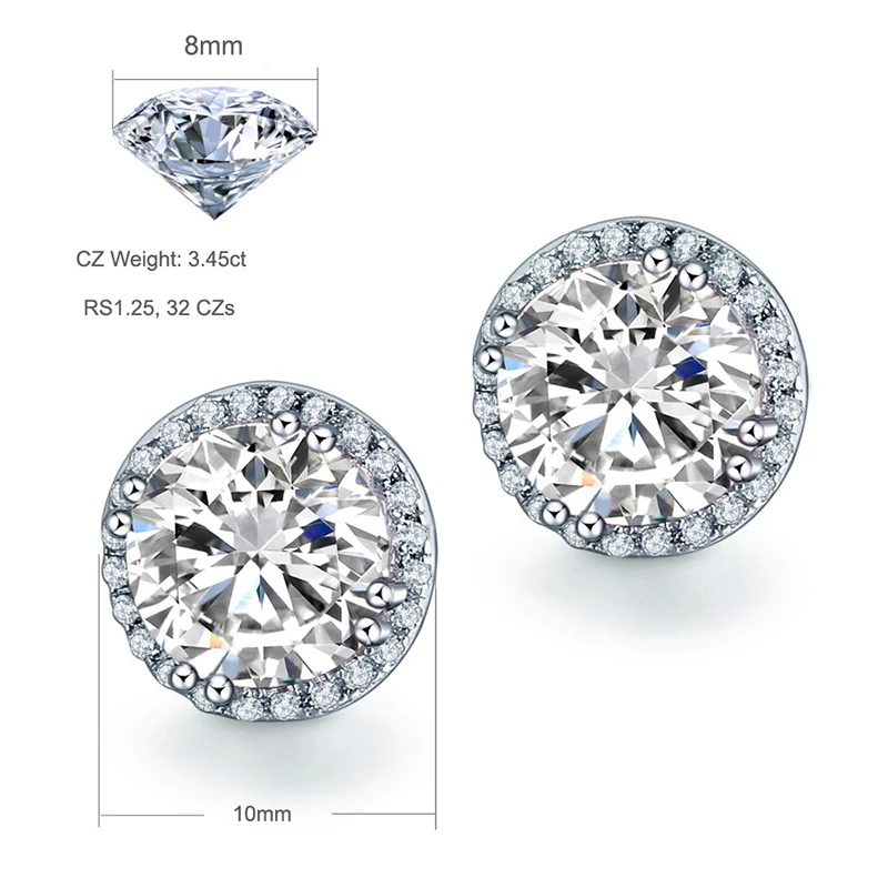 Shiny Fashion 8*8mm Round Cut 3.45ct 925 Sterling Silver Round Stud Earrings For Women Girl Earrings Fine Jewelry Gift