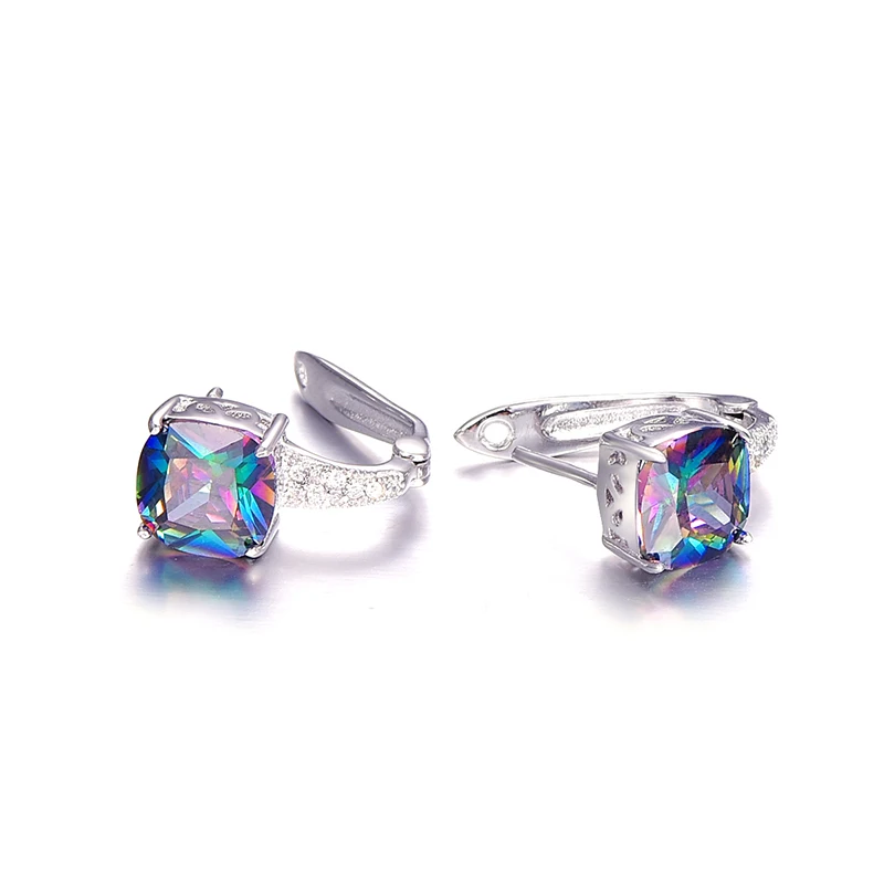 Fashionable Pierced Ear Cuff 925 Sterling Silver Earring Brand Fashion Jewelry for Women with 6.8ct Rainbow Topaz Stones